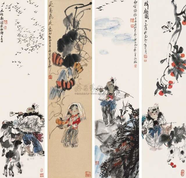拍品名称:杨力舟 2005年作 陕北娃 四屏