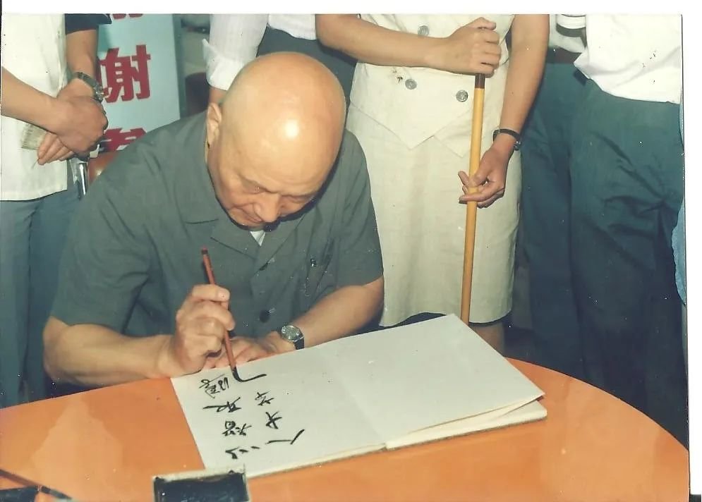 图 |1989年全国引进智力展览会期间,项南在参观福建馆时,题写“以智取胜人才第一”