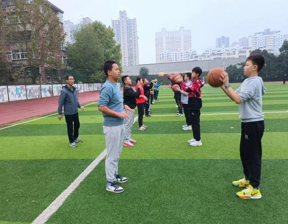 报名体育的学生最多,分两个社团--------一个球类、一个田径类。李化老师辅导球类,这学期重点教篮球。持球、运球、传球,分步讲解,规范动作要领。