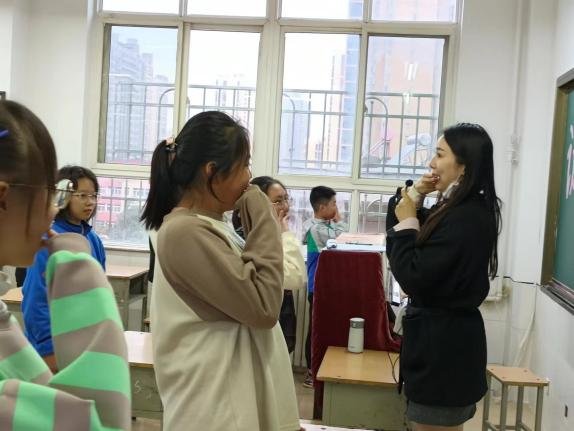 听,“yi-yi-ya-ya-yi-yi”这整齐嘹亮的旋律,正来自音乐社团的活动室。陈老师一边示范,一边讲解,特别是歌唱时打开笑肌的要领。她通过讲笑话,引发大家自然地笑,再让学生体会笑肌打开的位置。口型----发声----音阶----音程----轮唱,老师辅导精当,学生练得认真。