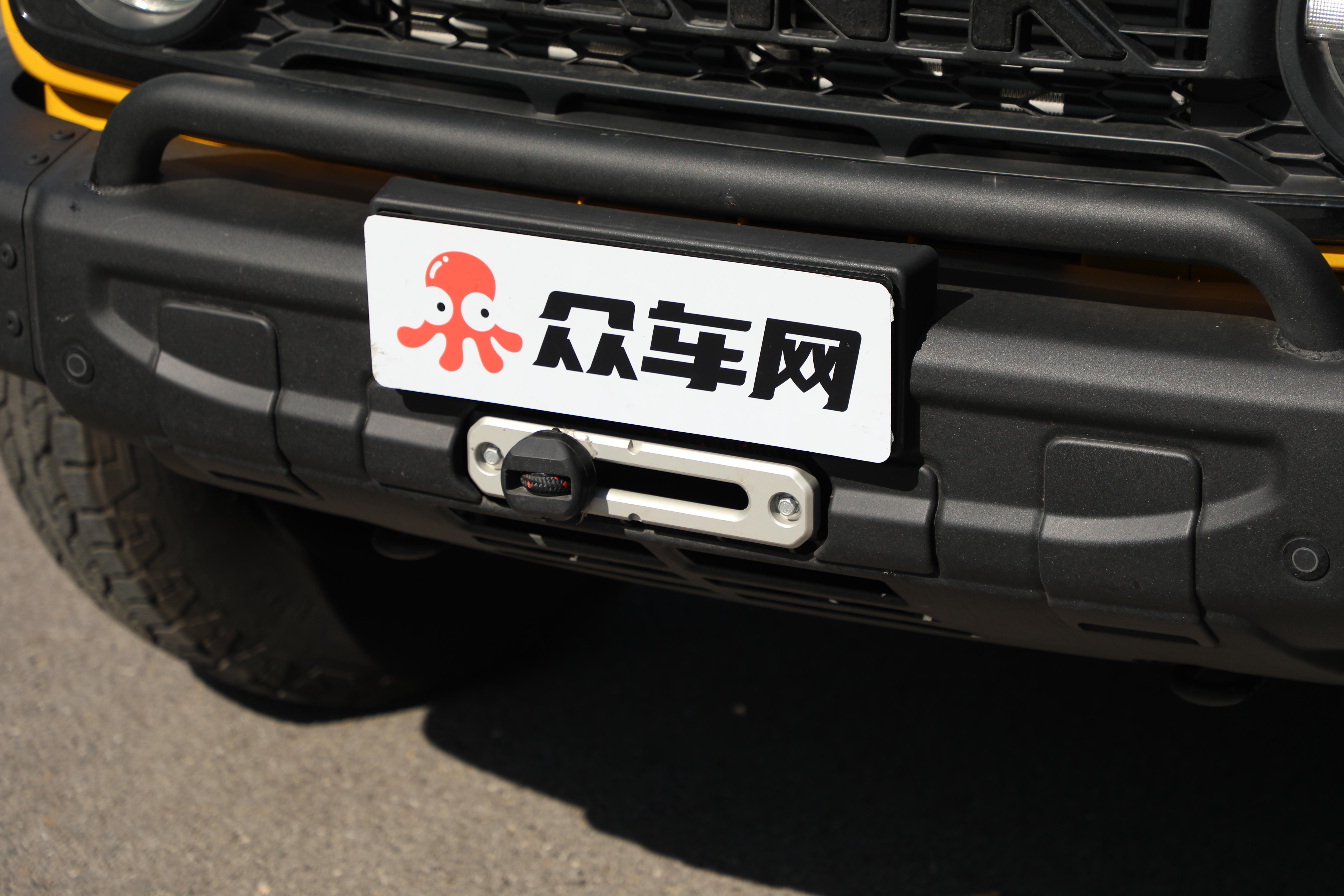 尾部依然是方方正正的造型很有力量感,外挂备胎也采用AT胎和防脱圈造型,野性十足,与车头一样后保险杠也采用了纯金属材质,不仅坚固质感也很出色。此外,这台车具备了原厂的拖车资质,拖车钩就位于后保险杠上,并且在下面预留了电源可以给拖车供电。