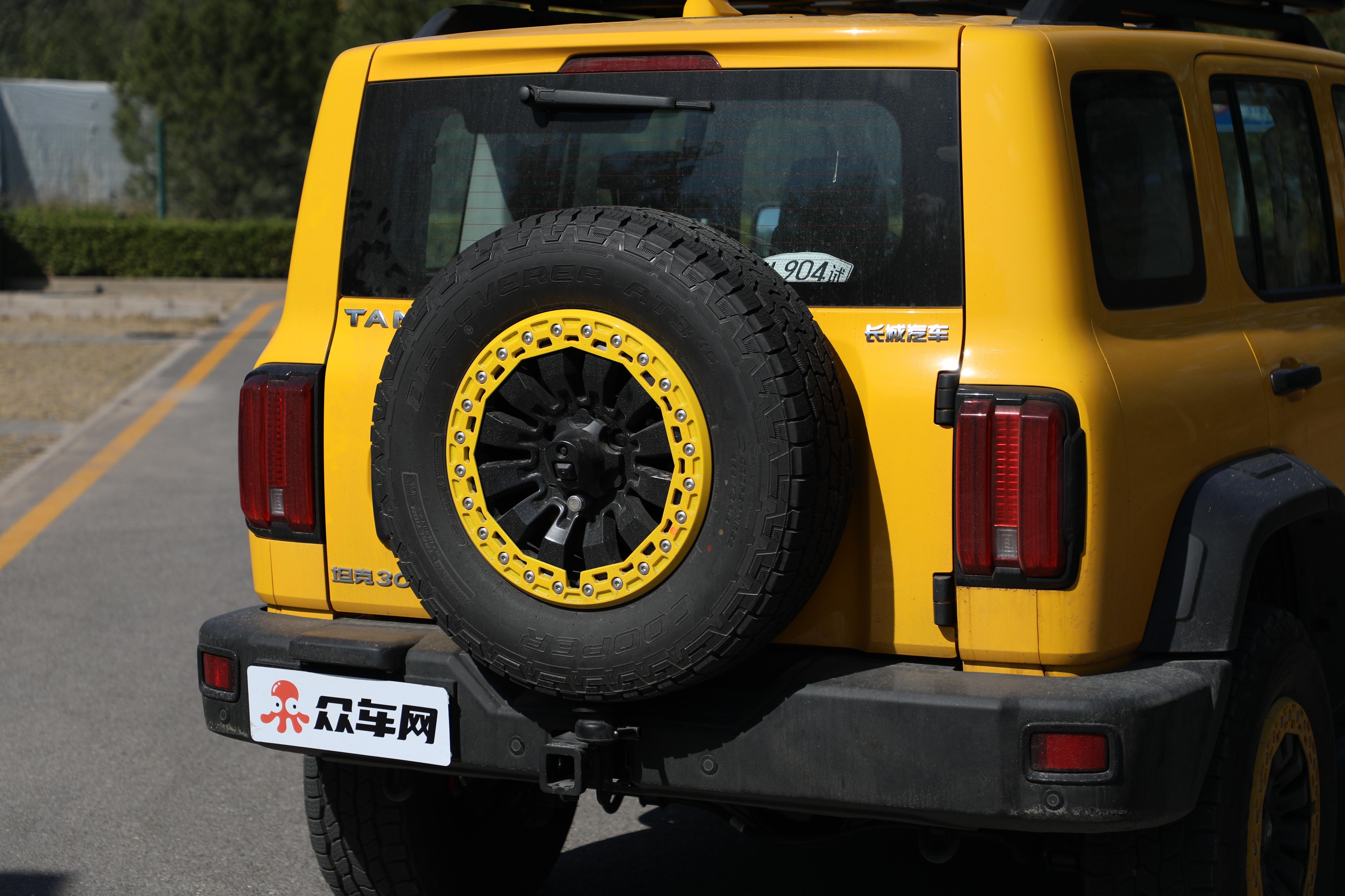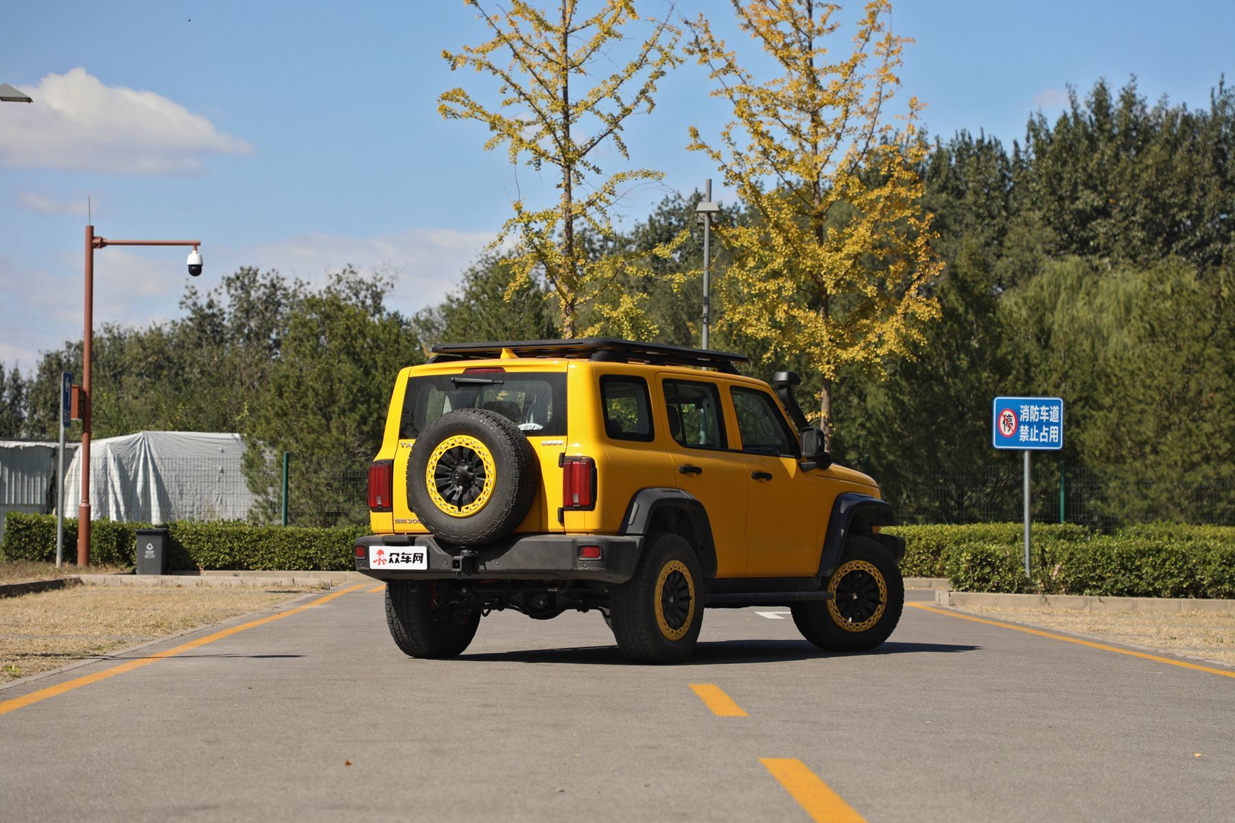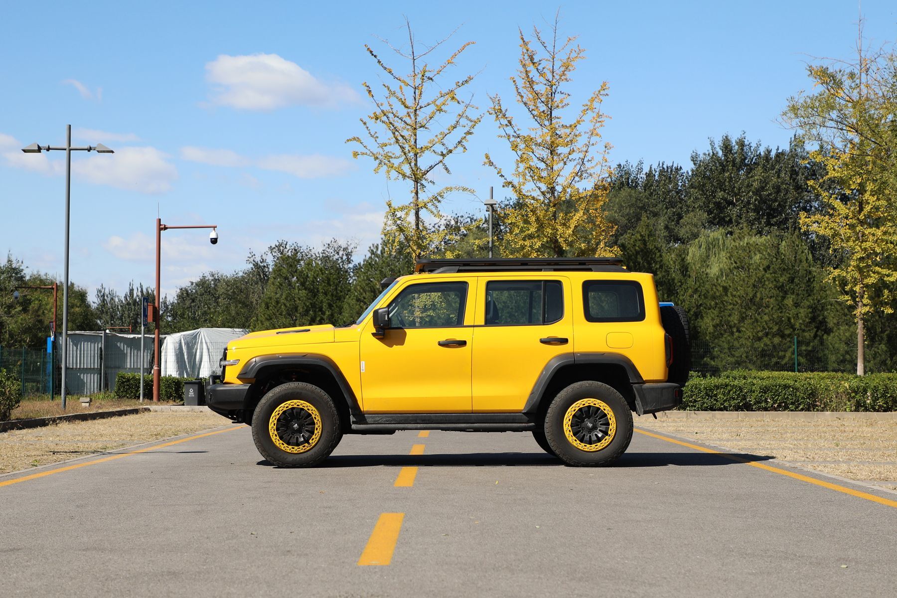 坦克300边境版拥有专属的黄金甲车漆配色,明黄色的车漆非常具有辨识度,整个车头最大的变化来自于前中网除了熏黑式格栅以外,格栅内部的品牌LOGO也被替换成“TANK”英文标识,个性十足。