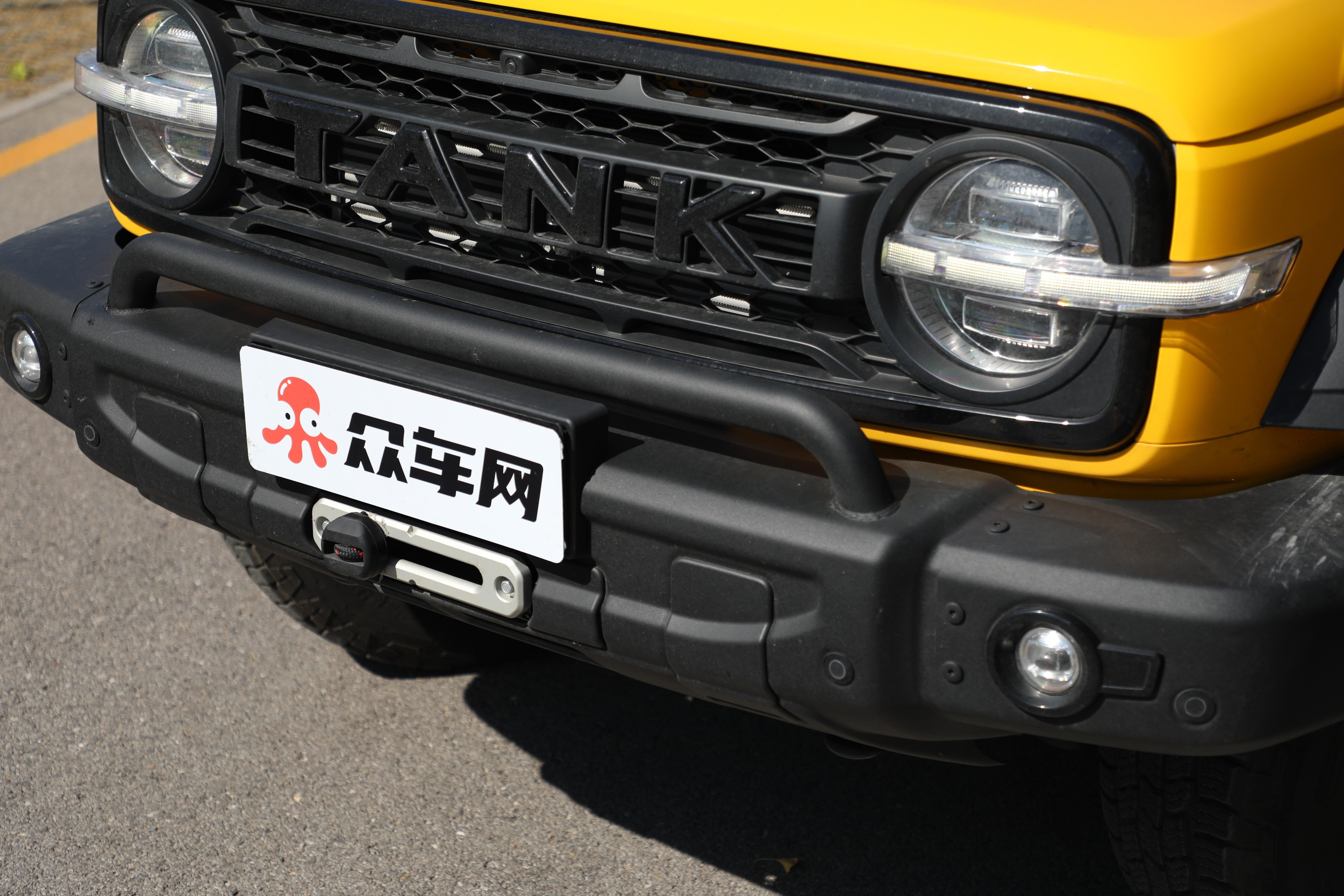 在金属材质的前杠上,坦克300边境版配备了原厂绞盘,型号为T-MAX的9500磅绞盘,绞盘位于保险杠内部,得益于比较小的体积,原厂配备的这个绞盘并没有违和感。