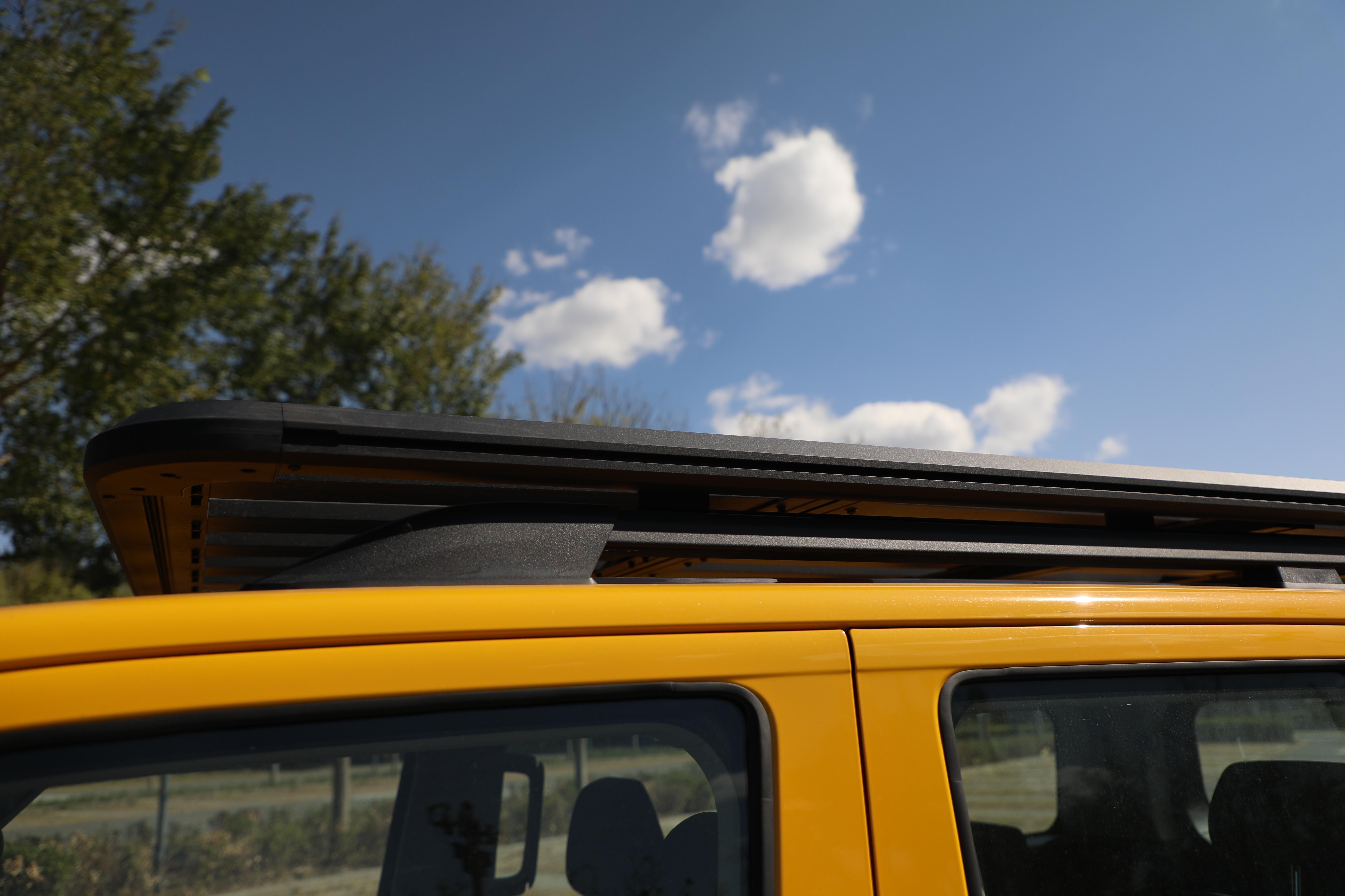 车顶的扩展平台也采用了更为坚固的金属材质,方便放置一些常见的野外装备,不过扩展平台位于天窗的顶部,在车内乘坐时,无疑会影响车内的采光,不过鱼和熊掌不可兼得,相比采光,扩展平台无疑更重要。