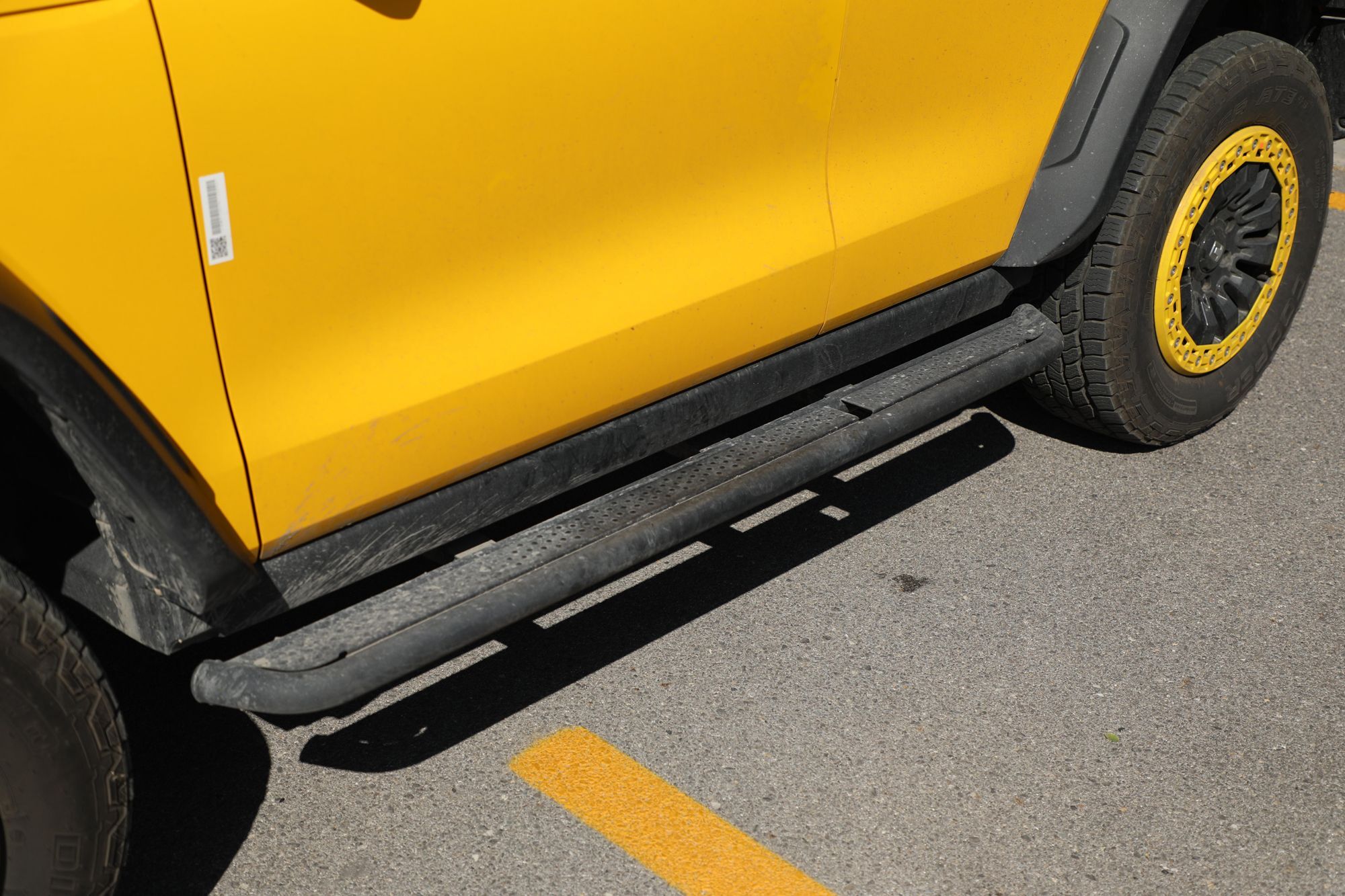 坦克300边境版在车侧的变化不是太大,最明显的区别来自于轮毂,轮毂的造型采用了硬派越野车常用的防脱圈造型,看起来十分的硬派。新车在轮眉处加入了黑色护板,采用复杂纹路的金属踏板还与黑色护板相连。