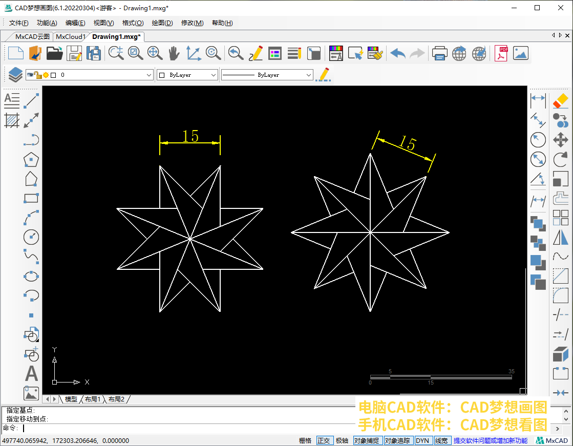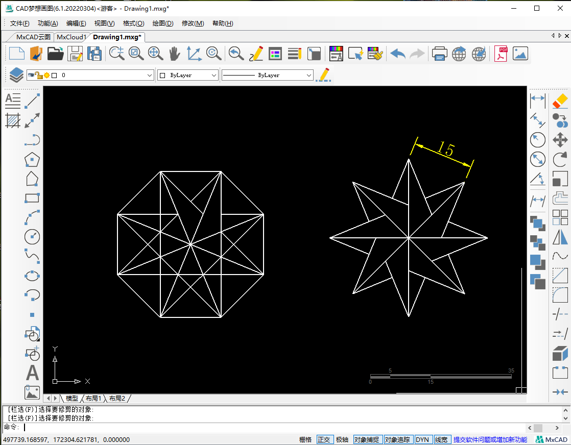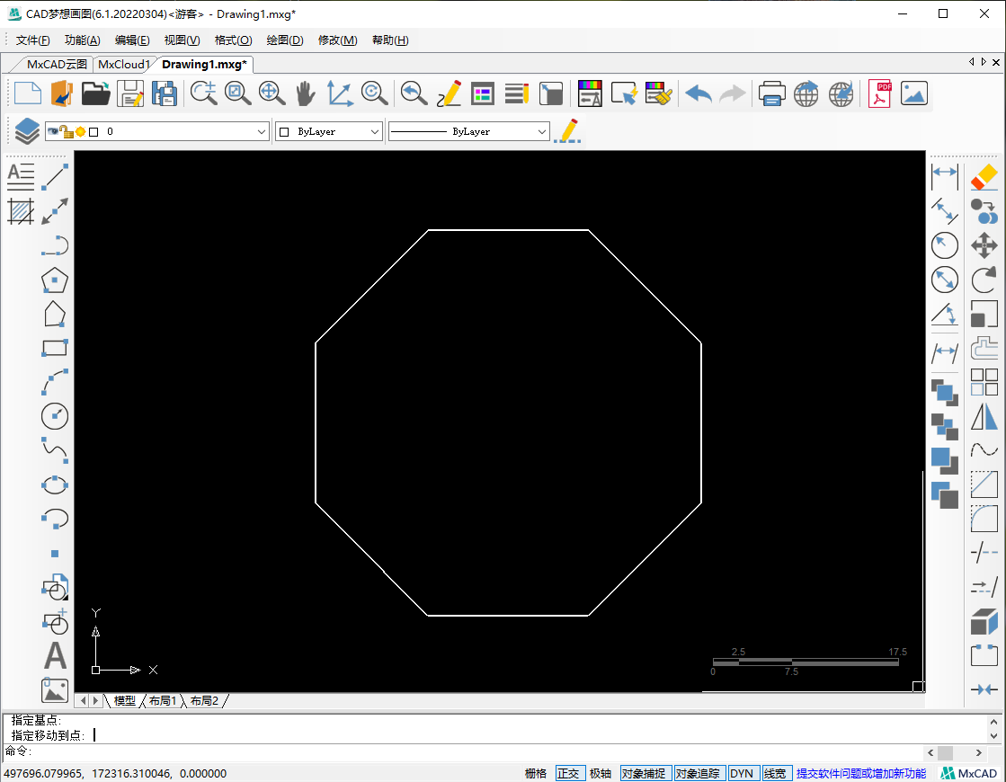 今天,我们会在CAD制图软件中绘制一个练习题,使用到的基础命令有CAD多边形命令以及修剪命令,直线命令。这篇文章中将会主要讲解多边形命令以及修剪命令的使用方法。接下来我们打开CAD梦想画图软件,给大家演示一下绘制过程。
