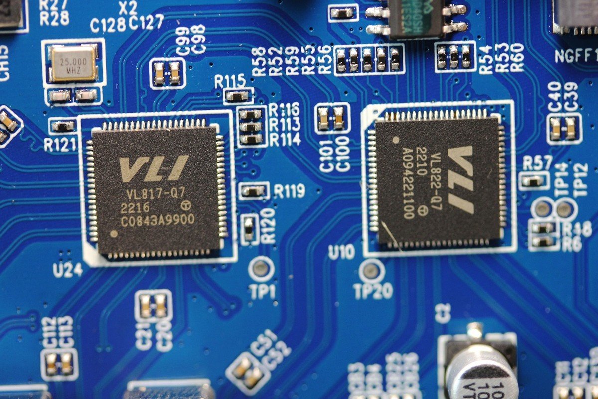 这里简单做个拆解,内置的集线器芯片是VIA 威盛电子VLI VL800系列芯片,即VLI VL822-Q7和VL817-Q7。威锋电子VL822-Q7和VL822-Q7均为USB3.2 Gen2集线器芯片,均支持1分4,且所有端口均支持USB 3.2 Gen2(10Gbps)操作。