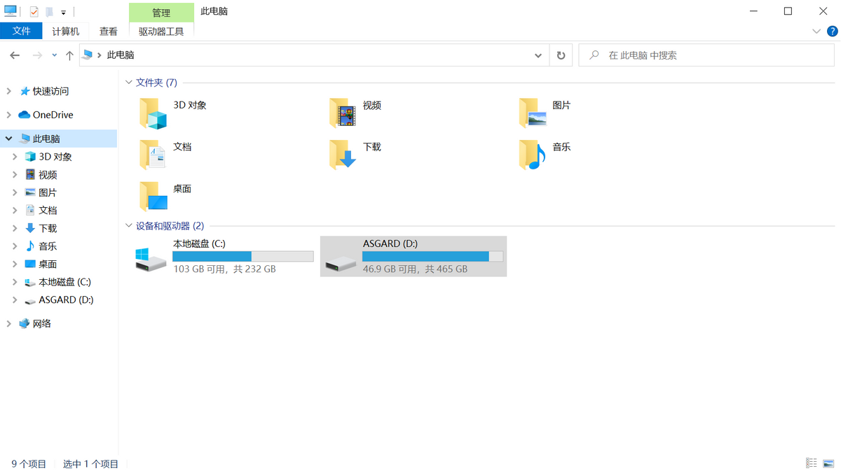 下图奥睿科15合一雷电扩展坞TB3-S4连接电脑但未插入存储设备前的截图,主机自带的硬盘总共是C盘和D盘2个。