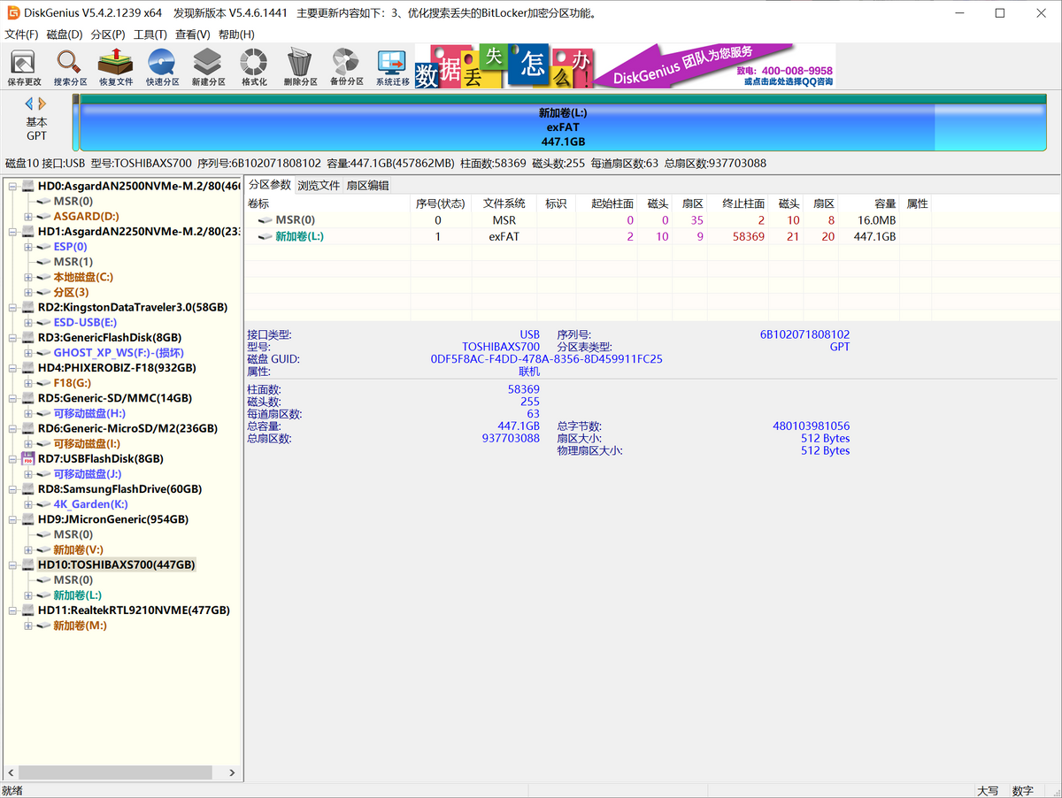 如果感觉上面的盘符不能说明什么,那么我们来通过DG进行确认。存储设备的数量总共是12个,除去主机自带的两个硬盘,剩余的10个设备全部都是外接的奥睿科15合一雷电扩展坞TB3-S4,