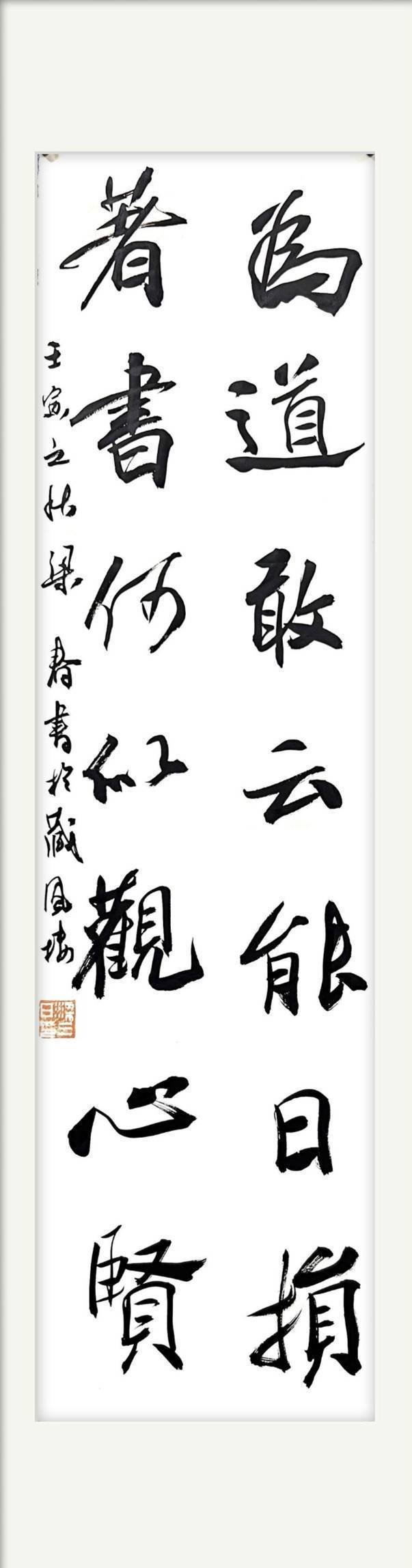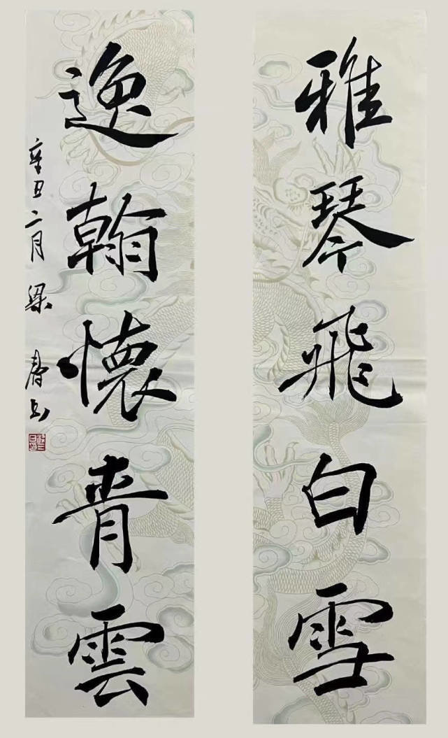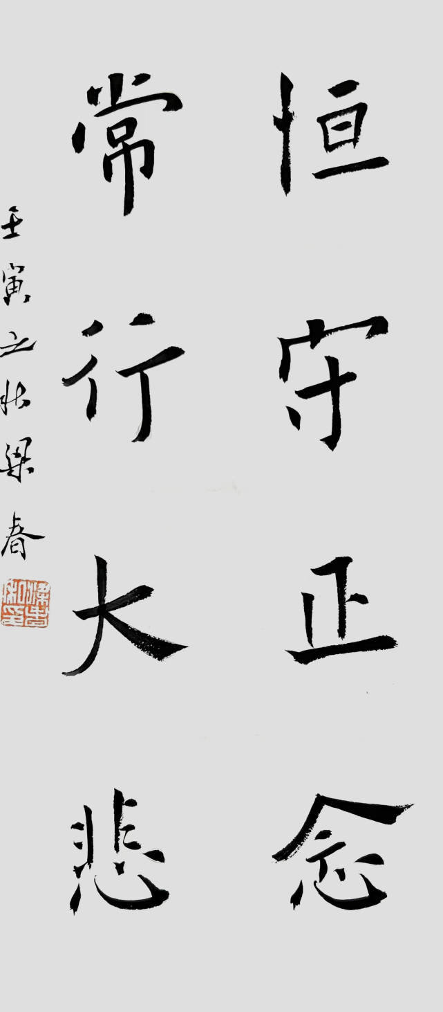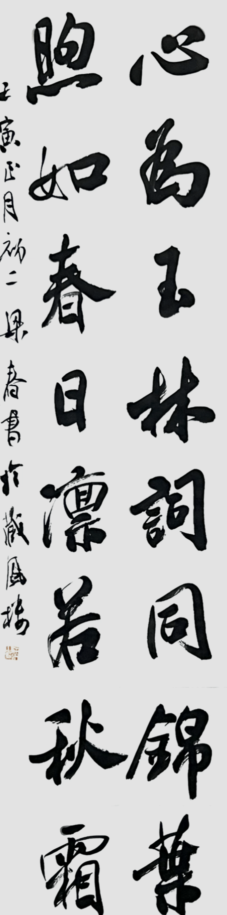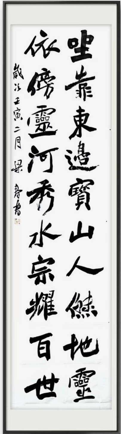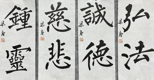 梁春老师的书法作品是传统与创新有机结合的典范,书艺清新飘逸、忠雅醇厚、刚柔相济。其形、其势、其神古今兼备,作品优雅生动,笔法结构疏密有致,章法规正有序,綫条丰润、胖瘦得体、方中有圆,回峰转笔奔放自如,点画递相辉映顿挫,韵态罩约之中蕴含著极爲流畅的动感,无论是运笔走势的佈控,还是思维认识的整合,都彰显了梁春老师娴熟的艺术功力。