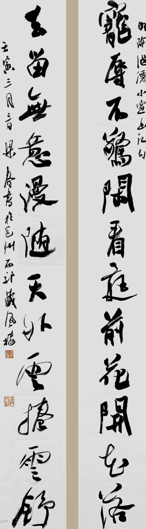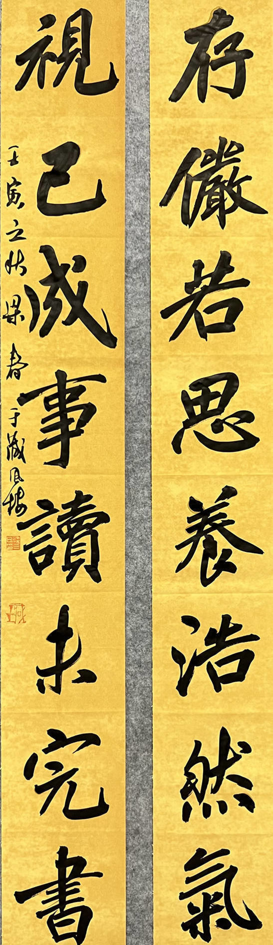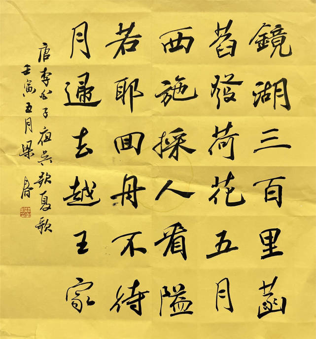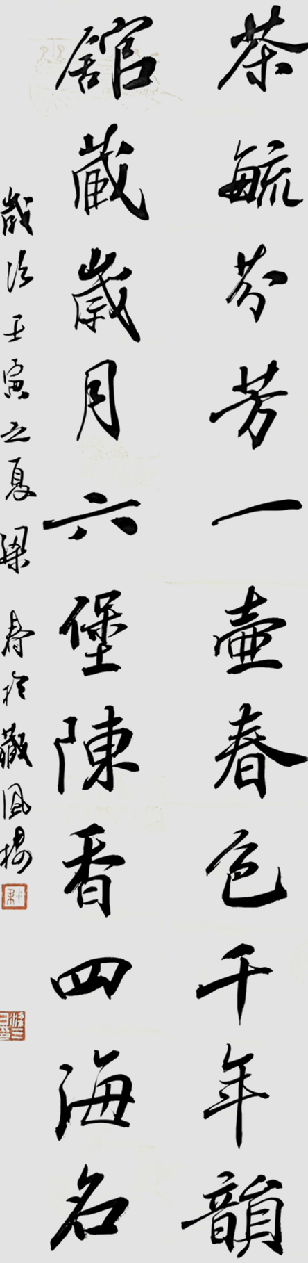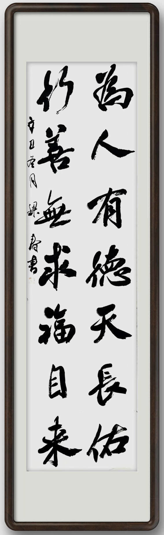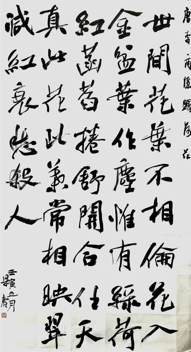 梁春老师的书法作品是传统与创新有机结合的典范,书艺清新飘逸、忠雅醇厚、刚柔相济。其形、其势、其神古今兼备,作品优雅生动,笔法结构疏密有致,章法规正有序,綫条丰润、胖瘦得体、方中有圆,回峰转笔奔放自如,点画递相辉映顿挫,韵态罩约之中蕴含著极爲流畅的动感,无论是运笔走势的佈控,还是思维认识的整合,都彰显了梁春老师娴熟的艺术功力。