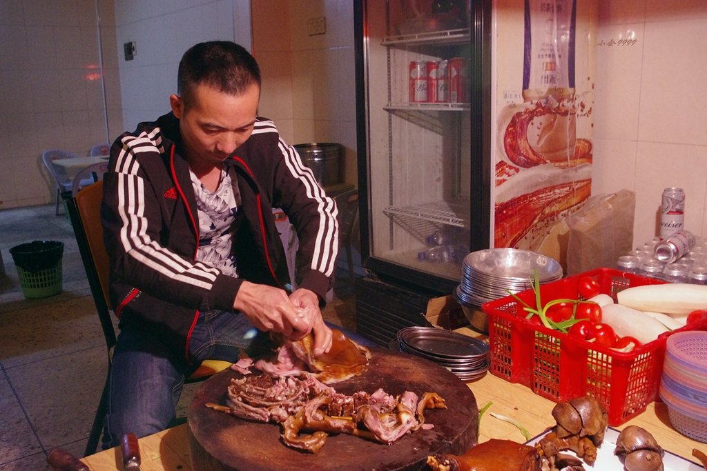 他家的卤水精心养护,每天卤煮许多肉类,鲜浓醇厚,非一般调和卤水可以比拟。当然,以上为非卖品,狗肉专门订购从汕头托运而来,只是打出一些卤汤另锅煮着自己吃。