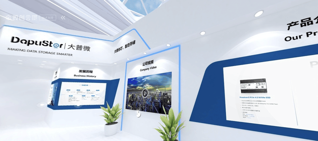 本次峰会大普微(DapuStor)还在高端新颖的“云展厅”全方位展示了公司的新产品与存储解决方案,以及公司简介、发展历程、公司视频、产品介绍、合作伙伴、文化荣誉等内容。用户在3D立体导航地图指引下,只需用鼠标轻轻滑动点击屏幕,就能360度观赏大普微(DapuStor)全部参展产品。