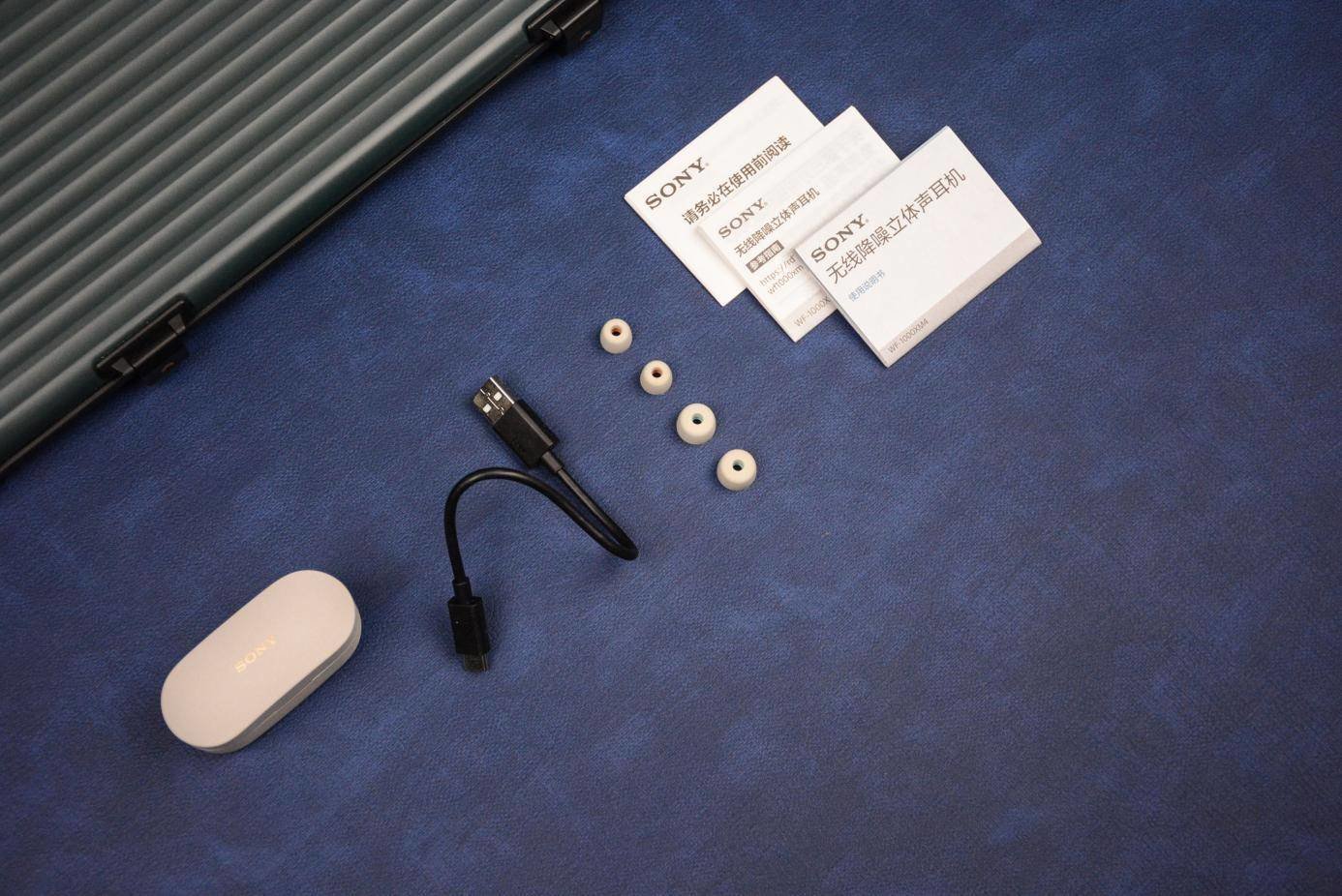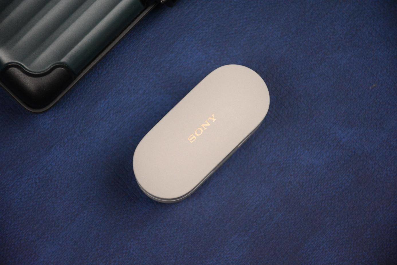 充电仓体积比较精巧,顶部有着烫金SONY字样。