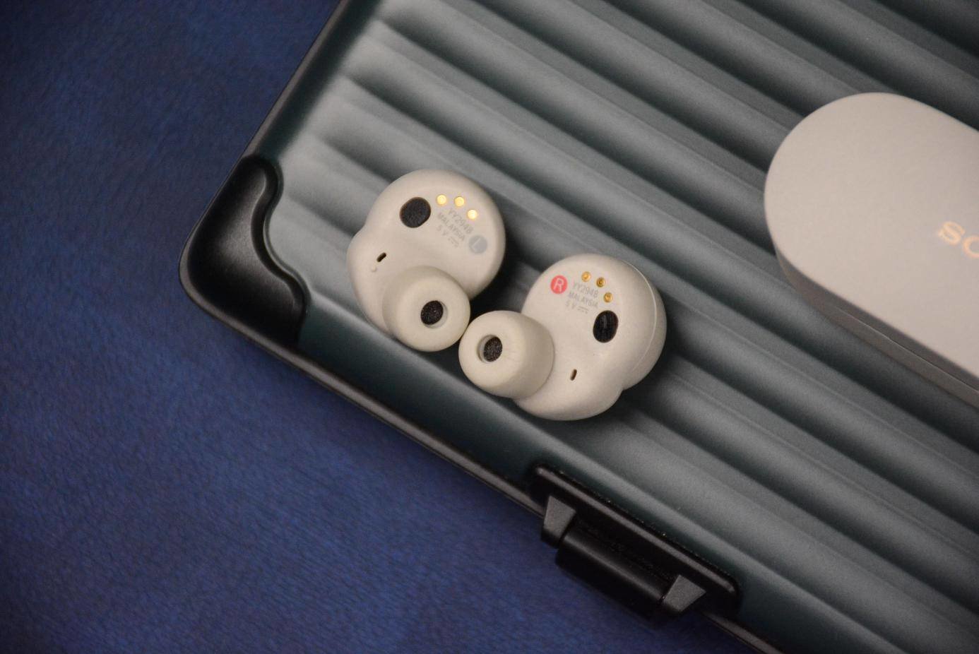 索尼WF-1000XM4体积较大,与内部丰富的硬件设计有着直接的关联;而通过耳机内侧可见一斑。