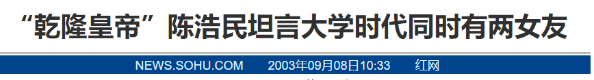 比如2000年,陈浩民拍摄《封神榜》和叶璇谈起了恋爱,然后不到一年两人分手,理由是花心。