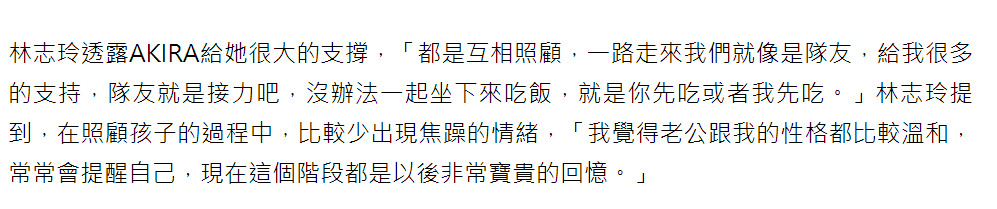 最后,林志玲还不忘提醒广大妈妈们,育儿,千万不要孤军奋战。