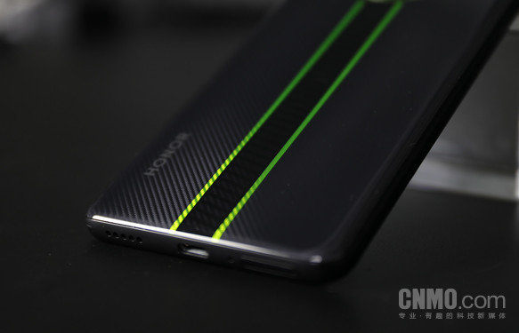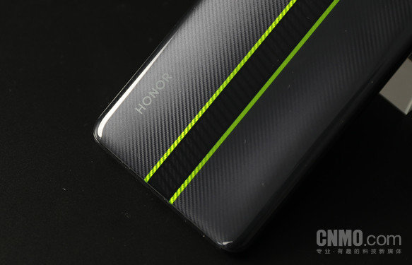 这个主打色荣耀官方将其称作竞速黑,同时还有幻夜黑和钛空银另外两种配色可供用户选择。相比之下,幻夜黑和钛空银看起来素净了很多,没有太多的负责的视觉元素,这其中钛空银能够在光线下呈现出珠光的质感,也挺特别的。