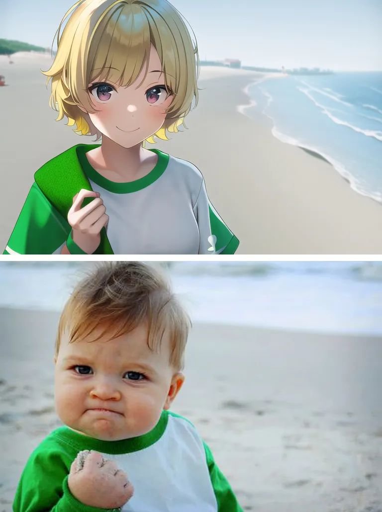 从海外开始,网友们尝试把各类梗图、MEME通过AI进行“娘化”。