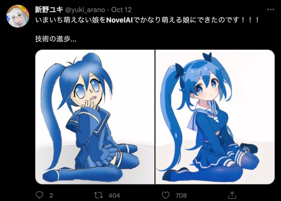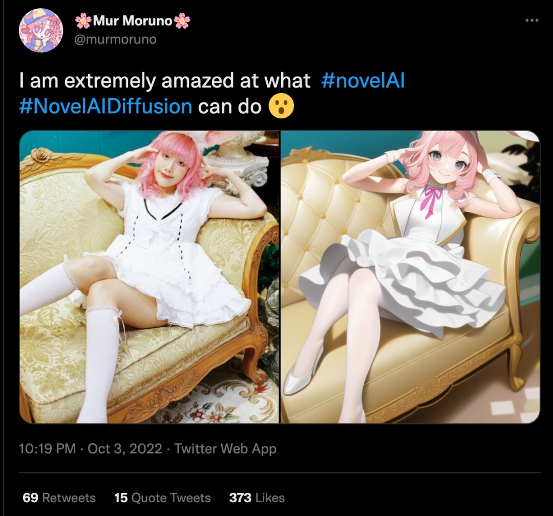 但随着热度与新鲜感的过去,人们聚焦的关键点最终还是落到了「Novel AI」那强大的「二次元化」能力上——