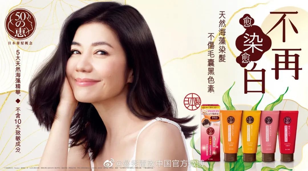 ▶曼秀雷敦官宣50惠天然海藻染发产品代言人钟楚红