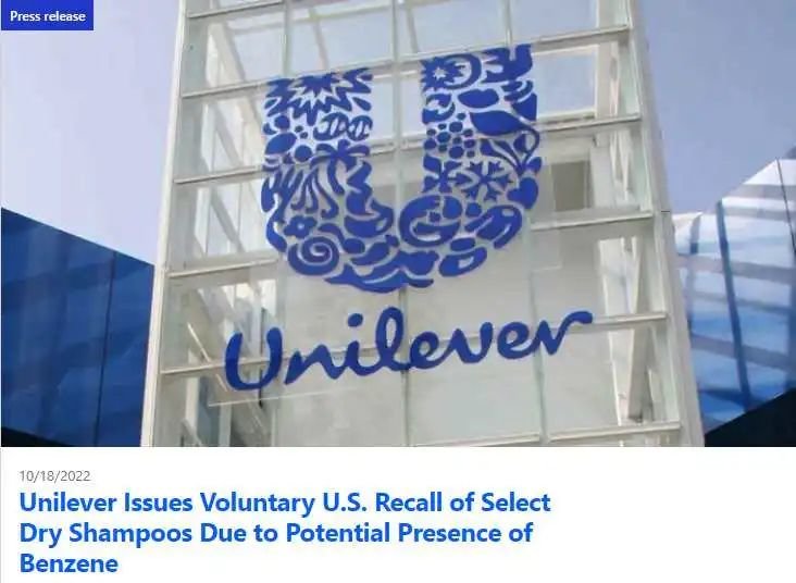 10月18日,联合利华发布消息称将召回10月前生产的干洗洗发水,原因是产品中可能存在苯。此次涉及品牌包括多芬、体吉和炫诗。