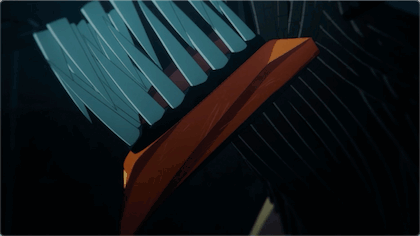 但是不可否认的是,对于电锯这种透视感极强的机械物件,3D建模+摄影更好呈现(同理还有各种车辆、机甲),不仅比完全二维手绘准确、真实,而且能省下太多的时间和精力(手绘的话需要作监进行大量修正),是平衡观感和性价比之后的最优解。