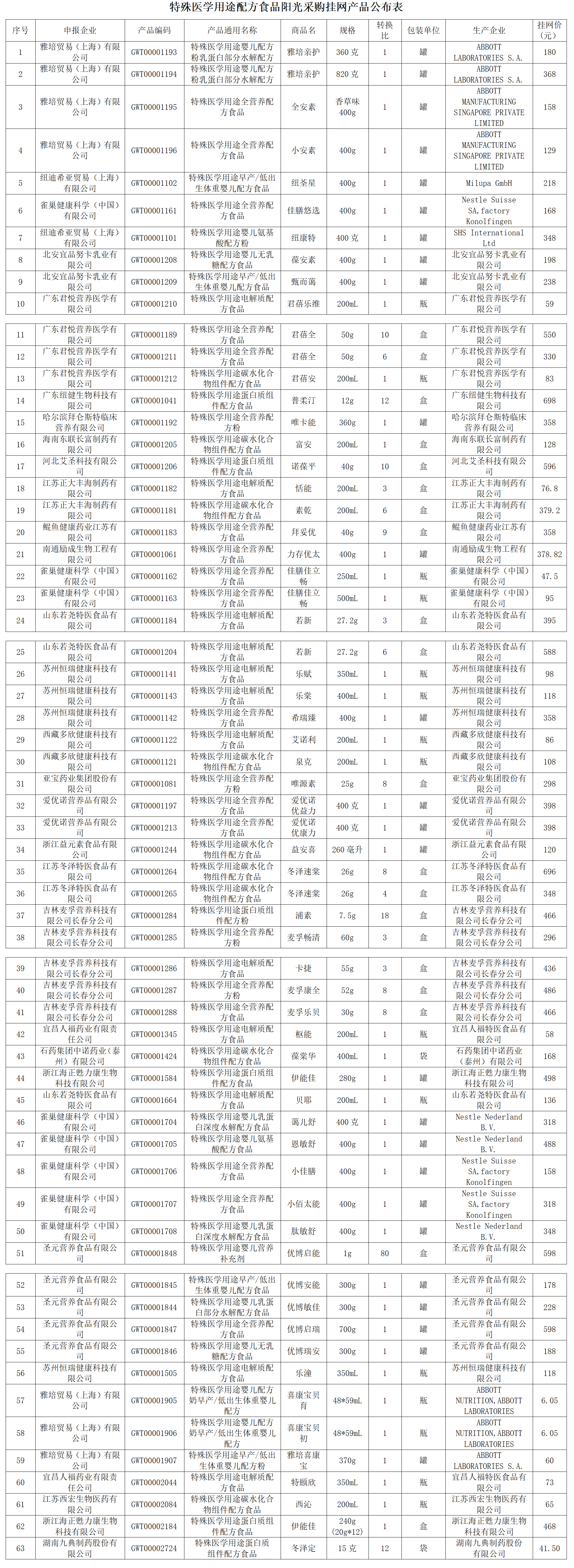 至此,江苏省已正式公布的特医食品阳光挂网采购产品共63款(附产品明细)
