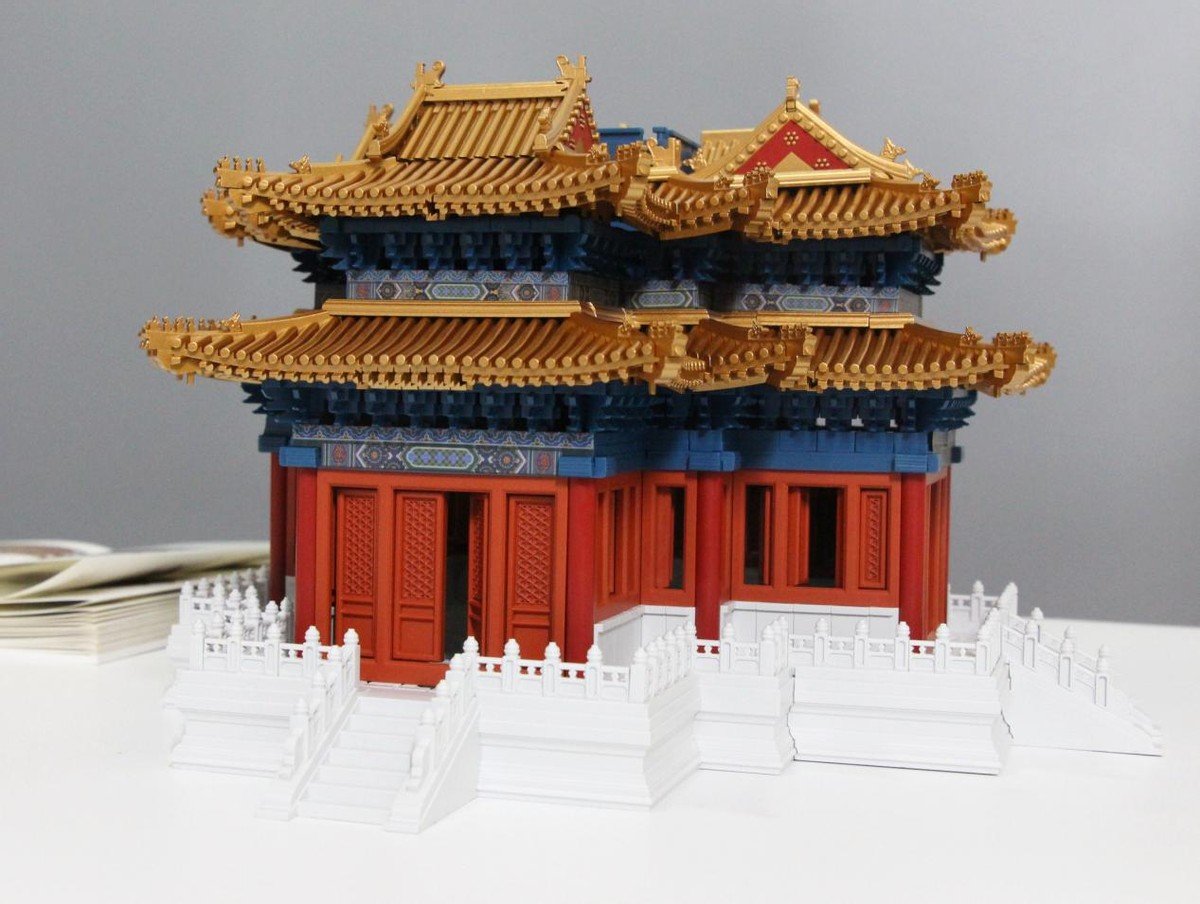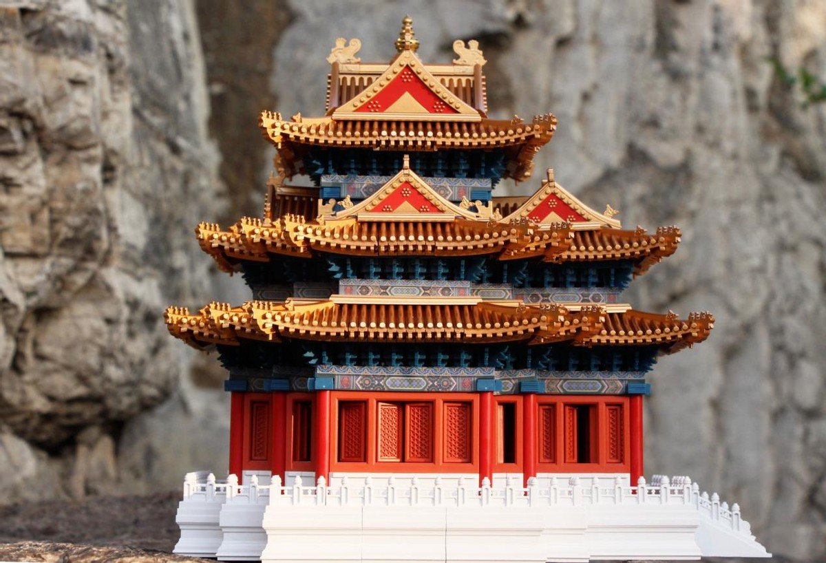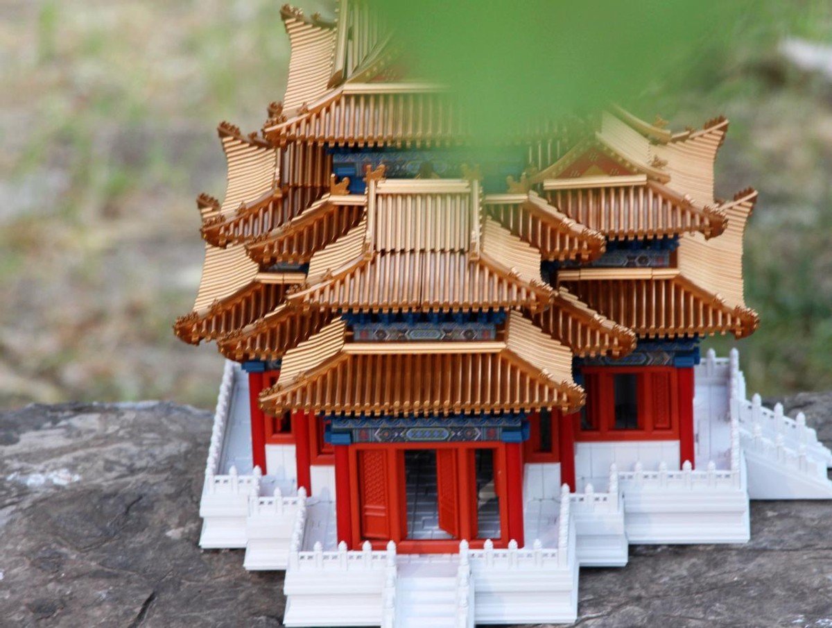 搭建完成后的角楼真的给人一种身临其境的感觉,那真实的感觉,那高低错落的效果,鎏金宝顶,屋脊鸱吻,飞檐仙人走兽,一眼望去,三重飞檐,四面抱厦,十字正脊,翼角窝角尽收眼底,这就是古代建筑带给我们的艺术美感,也是中国文化不可或缺的部分。