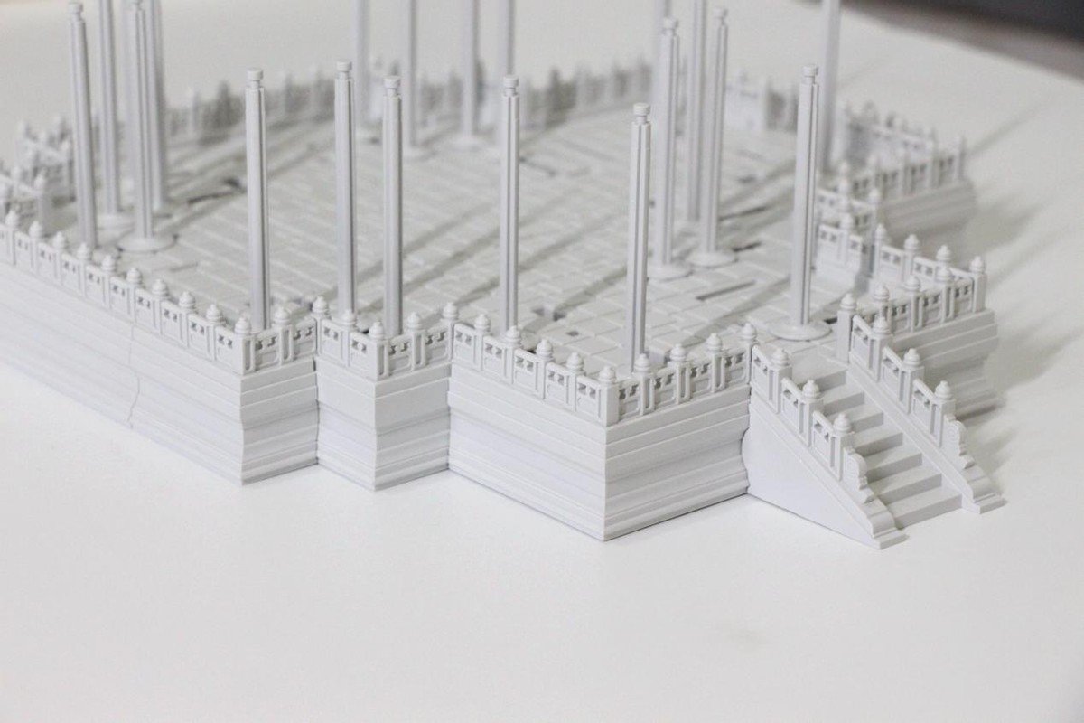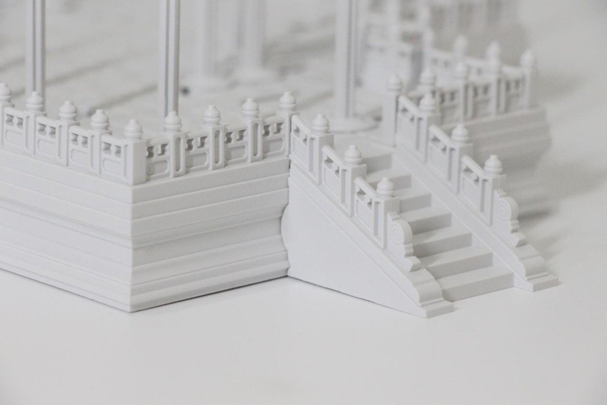 然后就是按照莲花型望柱,根据不同的位置安装不同的尺寸,台阶处的设计与屏幕不同,整体设计非常巧妙。