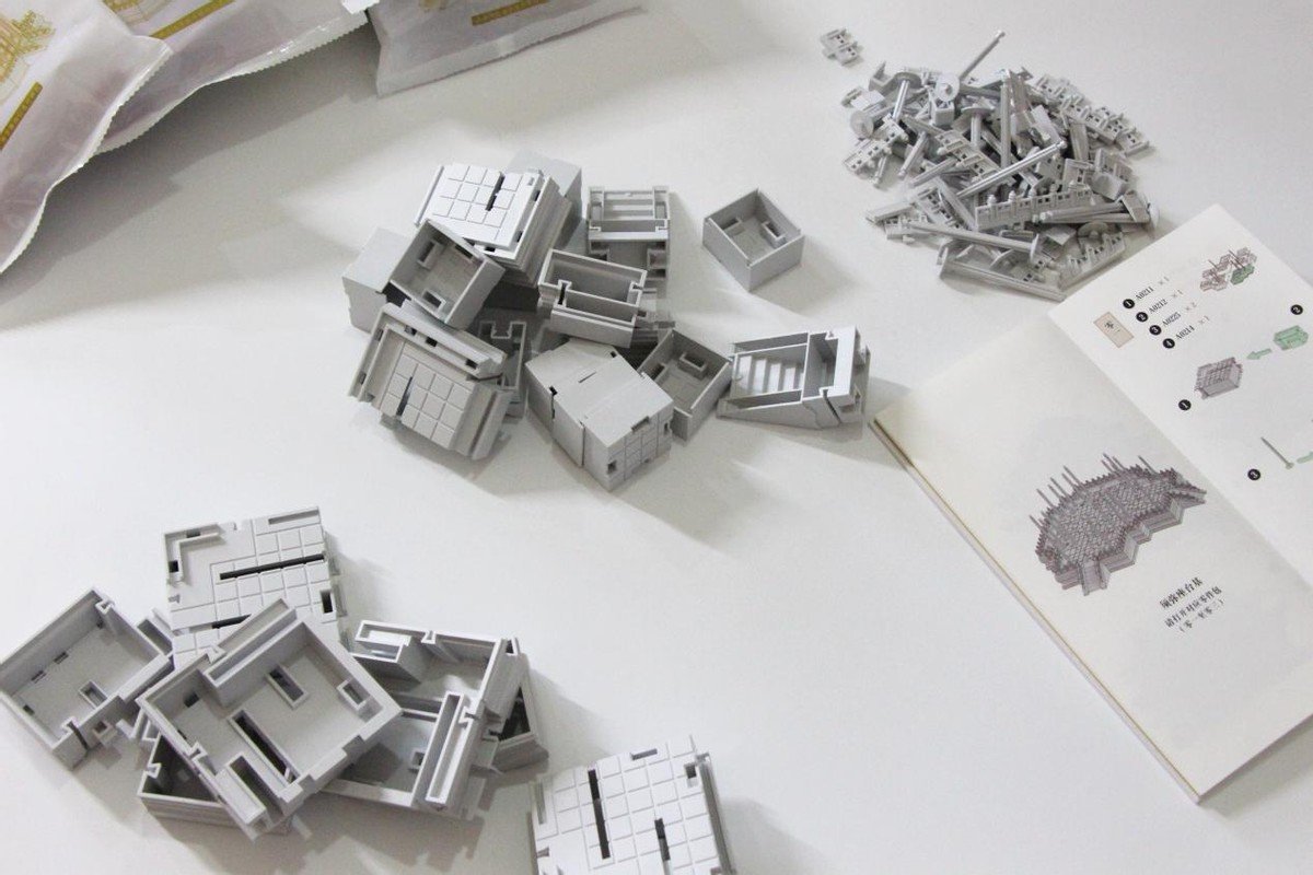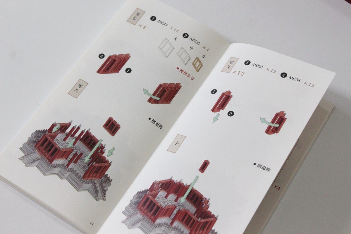 配件包部分按照顺序依次排开,根据营造手册选择配件包,依次打开,然后按步骤拼接整个千年榫营造积木 角楼也就可以开始动工了!