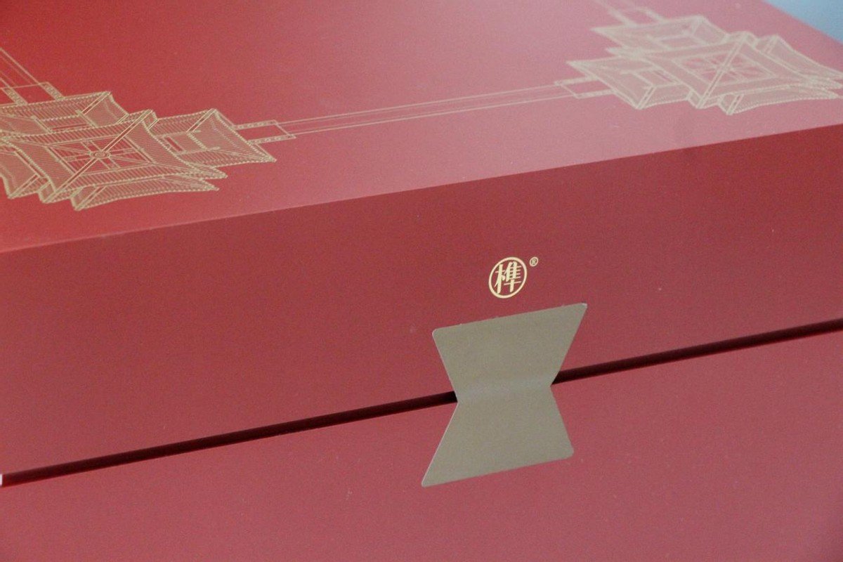 朱红色的包装礼盒设计,精致大气,颜色取自故宫城墙的颜色,这款千年榫营造积木 角楼是属于上新了故宫文创产品,包装正面有名称和LOGO设计,以及4个角楼的位置摆放展现。独特的封装贴纸和侧面榫字设计十分巧妙。