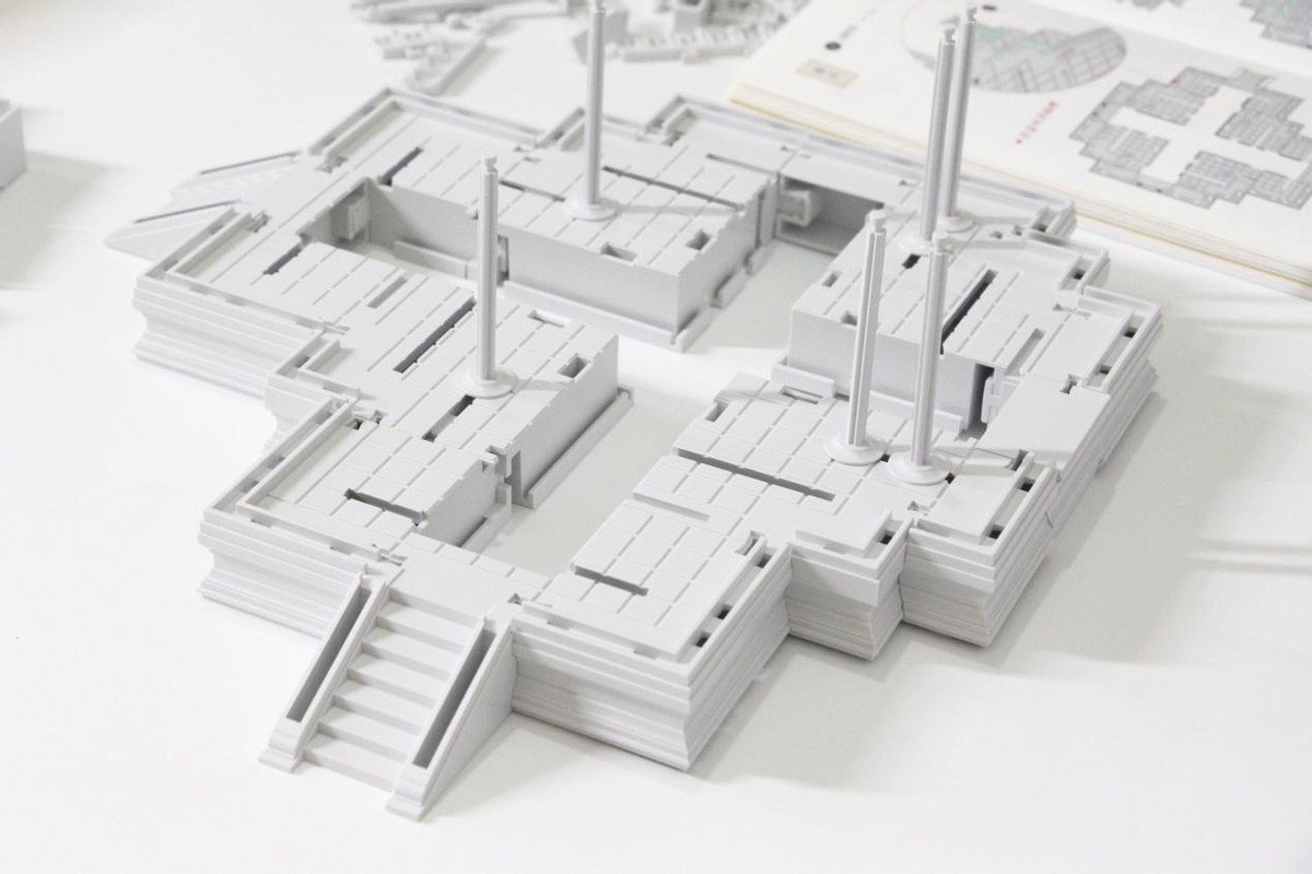底层须弥座台基搭建,按照步骤把每个榫卯结构的部件间歇拼接搭配,细节很重要。