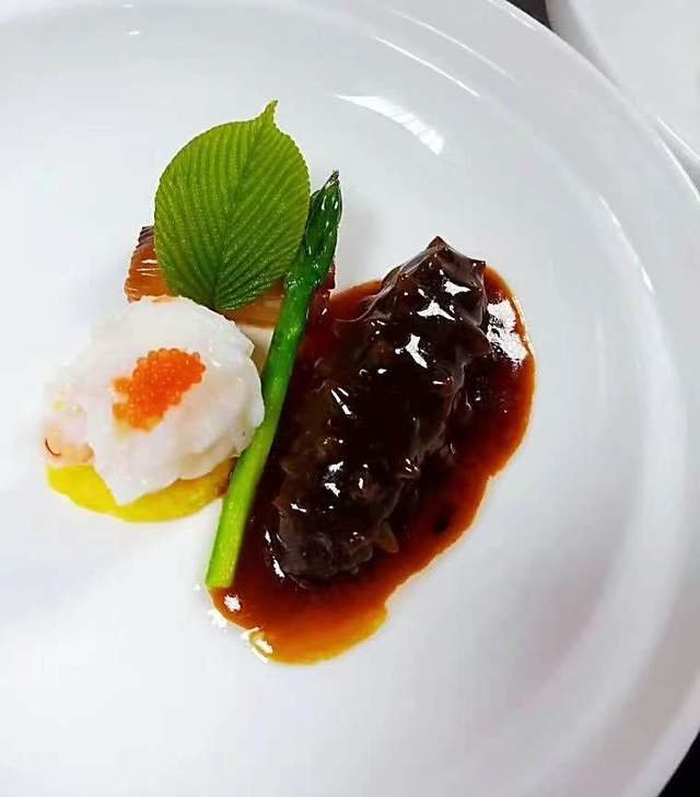 虽然以象形海参闻达厨界,陈凡东在烧制传统海参菜上也有很高的水平。“半空翻碧浪,平陆走苍龙。”2019年,赵凡东在上海烹饪赛事表演葱烧海参,一举夺得金奖,还带领团队荣获了团体金奖。葱烧海参,是中华特色美食,鲁菜中的当家经典名菜。葱烧海参以水发海参和大葱为主料,海参清鲜,柔软香滑,葱段香浓,食后无余汁。是“古今八珍”之一,葱香味醇,营养丰富,滋肺补肾。《本草纲目》记载海参食疗效果优,是滋补上品。陈凡东从传统的葱烧海参中汲取创作灵感,创制象形海参,突破了厨行在葱烧海参这道菜上的内卷,把海参做出了新意,体现了大师的匠心,也让大众在葱烧海参之外的吃法上找到了海参美食的新意味,是餐饮业高质量发展的典范创新。