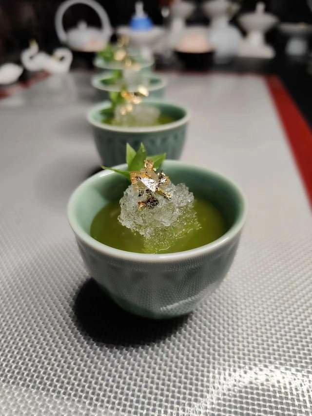 “兜舆迢迢入翠微,往来白云荡胸飞。”葱烧海参是山东鲁菜名菜,陈凡东大师突破传统窠臼,做出了新意。“选用淡水鲜鱼肉,置入海参、燕窝、鲍汁,捏出海参形状装盘上桌。这款象形海参造型漂亮,营养丰富,口感味道胜过真海参,客人们对菜品评价非常高。”济南南郊国宾馆行政副总厨、注册中国鲁菜烹饪特级大师陈凡东别出心裁地研发了赛过真海参美味的象形海参,因为比真海参还要美味鲜美,推出后客人叫好,也让厨坛人纷纷点赞。