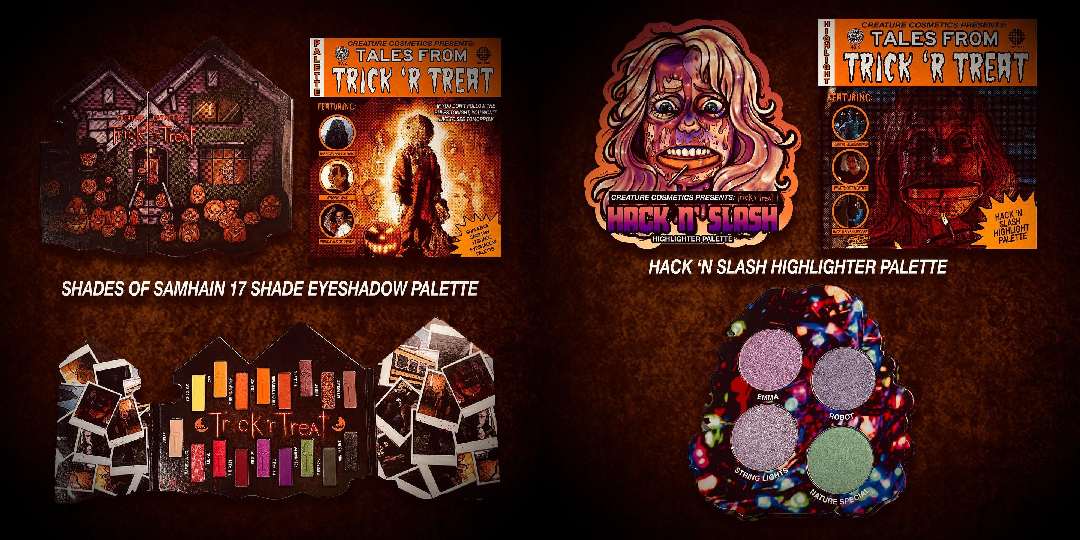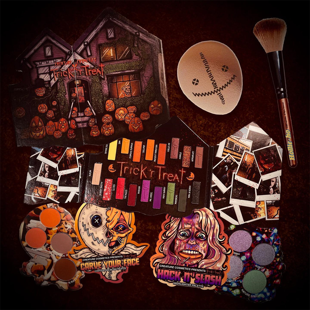 今年万圣节,Creature Cosmetics推出了与美国恐怖电影《别惹小孩(trick or treat)》的联名系列Trick 'r Treat,产品包括了眼影盘、高光、腮红、唇膏、美妆蛋、化妆刷、液体唇膏等。