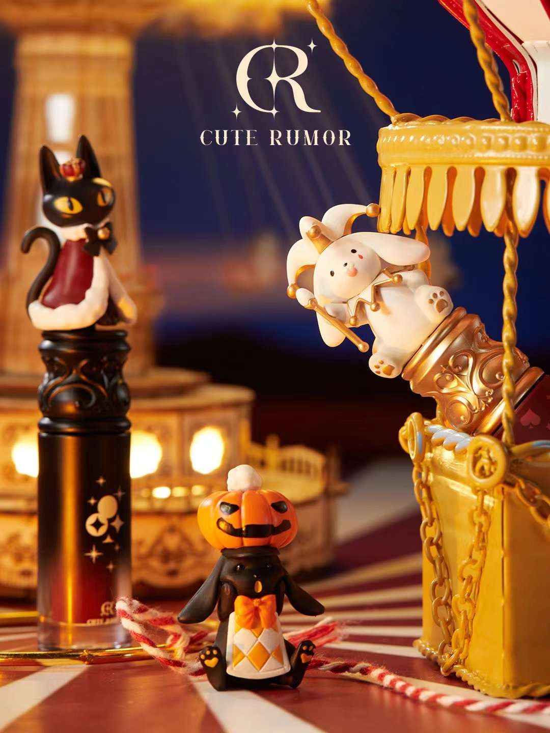 《别惹小孩(trick or treat)》电影的主角是一个头戴南瓜,身穿斗篷的南瓜人,因此系列产品中可以看到各种诡异表情的南瓜以及南瓜人本人。