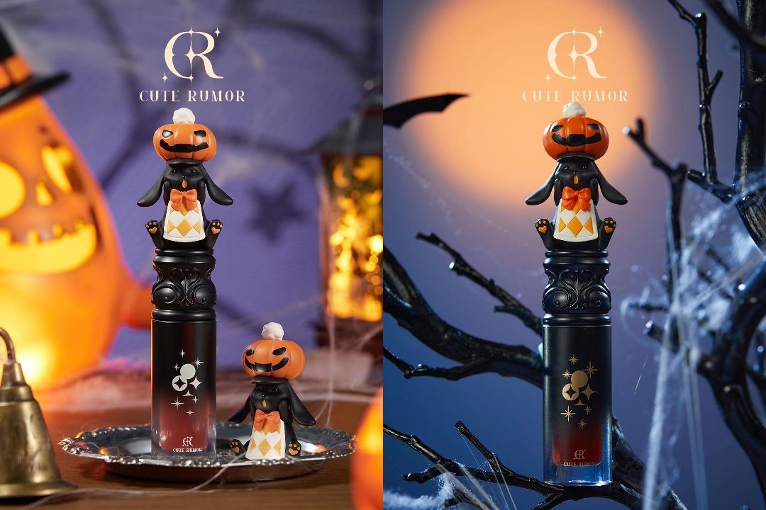 新品延续了可爱物语一贯的产品风格,其唇霜罐体为立体的手办,每一个色号对应一个图案,包括了黑猫女王、黑白小丑以及一个万圣节限定的惊叫南瓜,手办上还有魔法棒、纸牌、彩纸等细节设定。