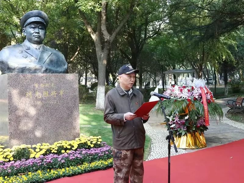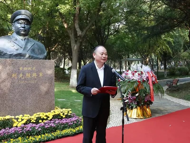 方忠在仪式致辞中回顾了刘先胜将军生平。他表示,刘先胜将军早年积极投身革命洪流,战功卓著,先后参加安源路矿工人大罢工、秋收起义、二万五千里长征,历任红军团政委、新四军一师参谋长、解放军苏北军区副司令员;解放后曾任苏南军区司令员、江苏省军区司令员、南京军区副司令员,1955年被授予中将军衔。1952年学校筹建之初,刘先胜将军以苏南军区司令员身份兼任首任校长,力倡艰苦奋斗之精神,一开优良风气之先河,由此开启了江苏师范大学70年筚路蓝缕、创造辉煌的建设发展之路。追源溯流,倍感创业之艰难;慕贤思远,犹觉催人以奋进。