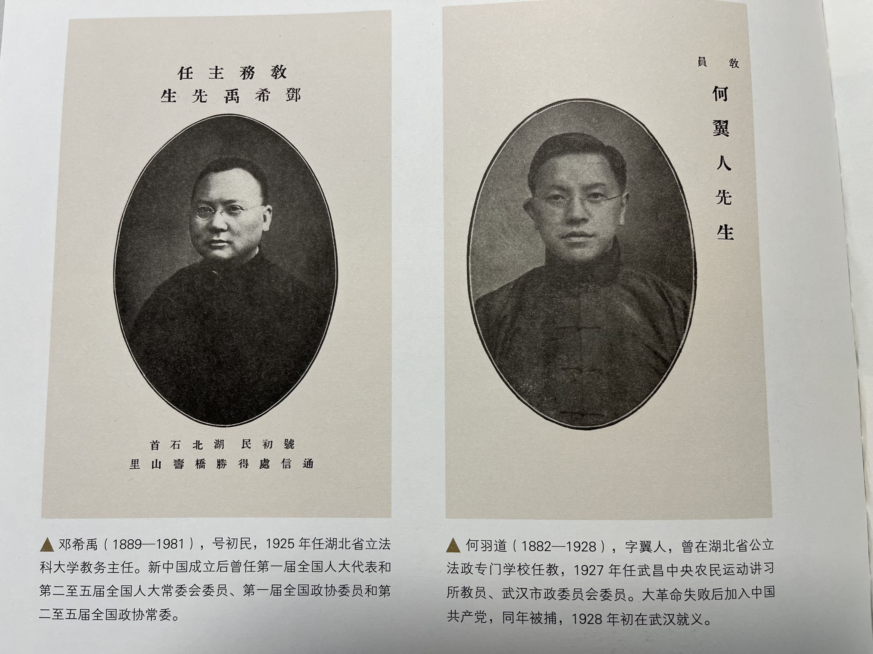 中共早期党员何羽道(右)任教湖北省公立法政专门学校。