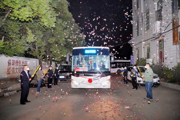 清晨,第一辆J208路公交车发班运行。 通讯员杨麒 摄
