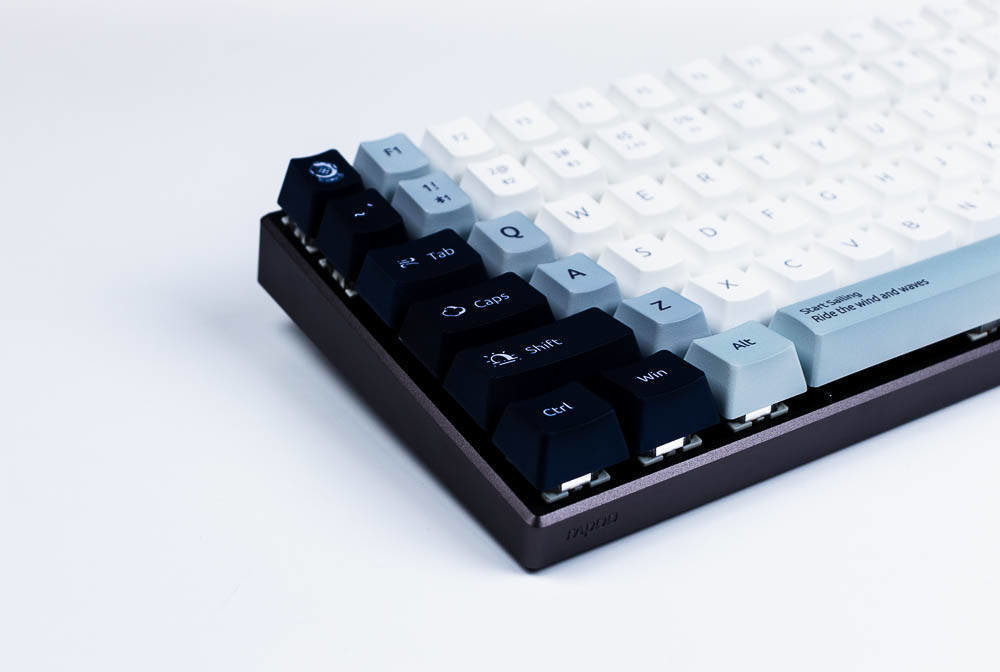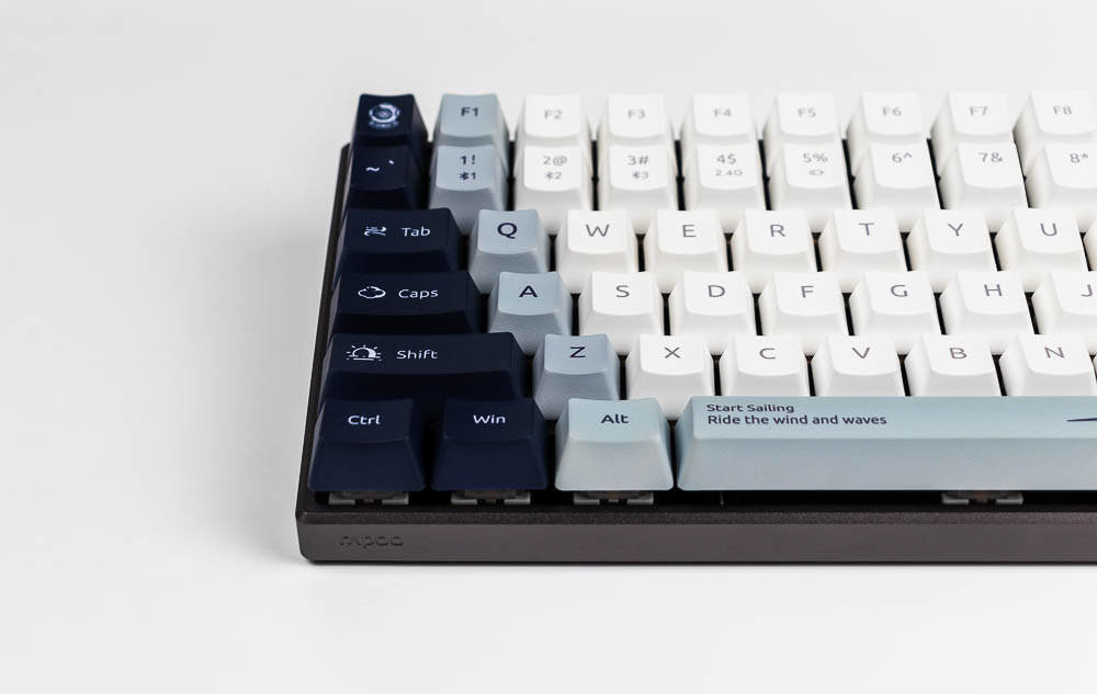 雷柏MT510PRO机械键盘航海日记版和雷柏V700-8A机械键盘采用一样的键帽,双色注塑键帽,防褪色,耐磨损,完全满足日常使用需求,敲击的手感也不错。