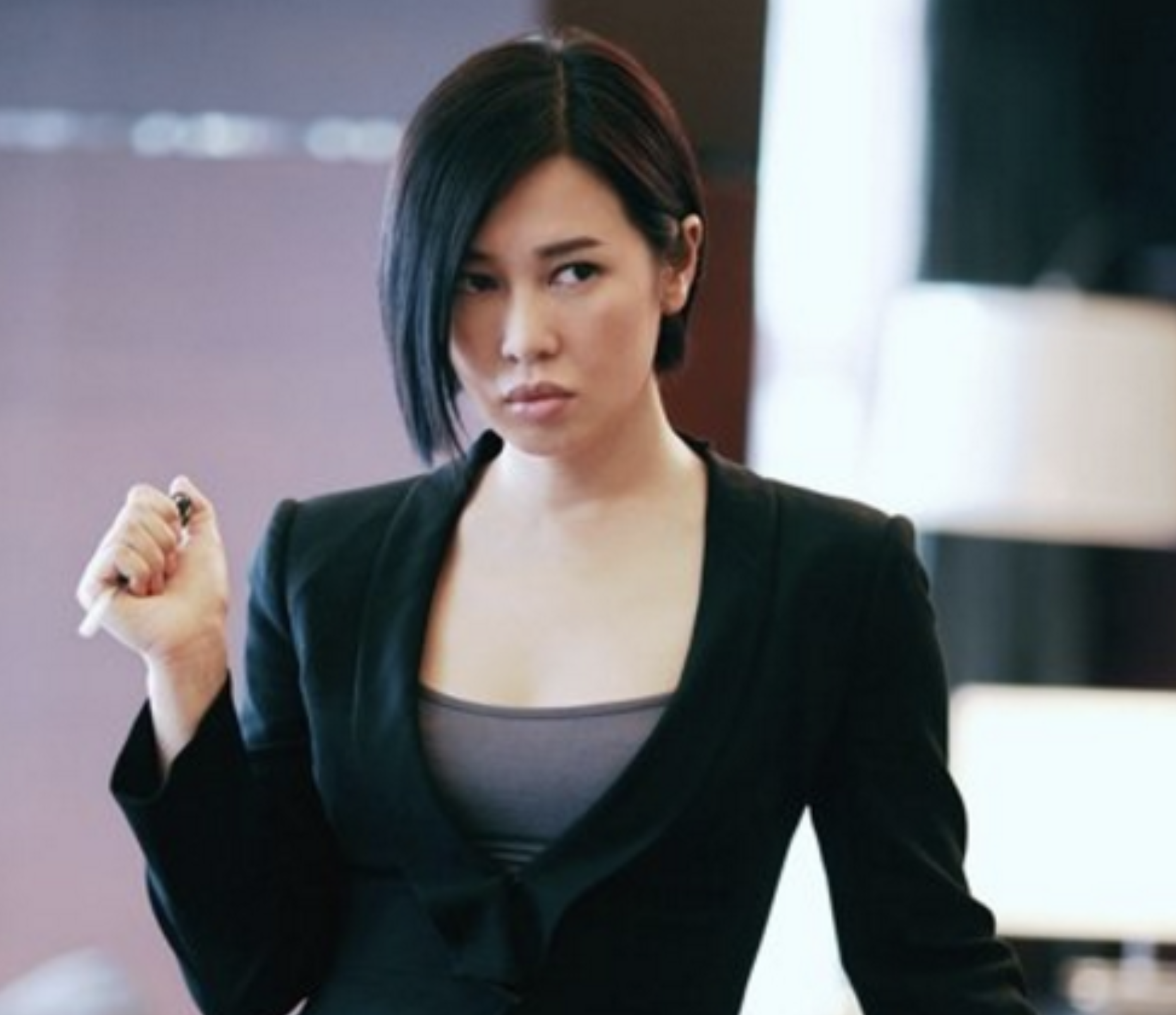 她的长相本就端庄大气,眉眼之间透露着一股震慑人心的凌厉感。