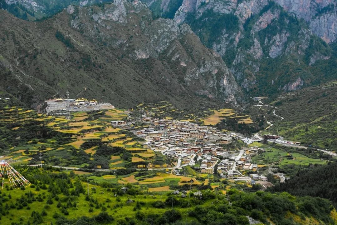 这里的藏式榻板木屋鳞次栉比层叠而上,经幡迎风飘扬,每天清晨山间云雾缭绕,是传说中甘南“伊甸园”。