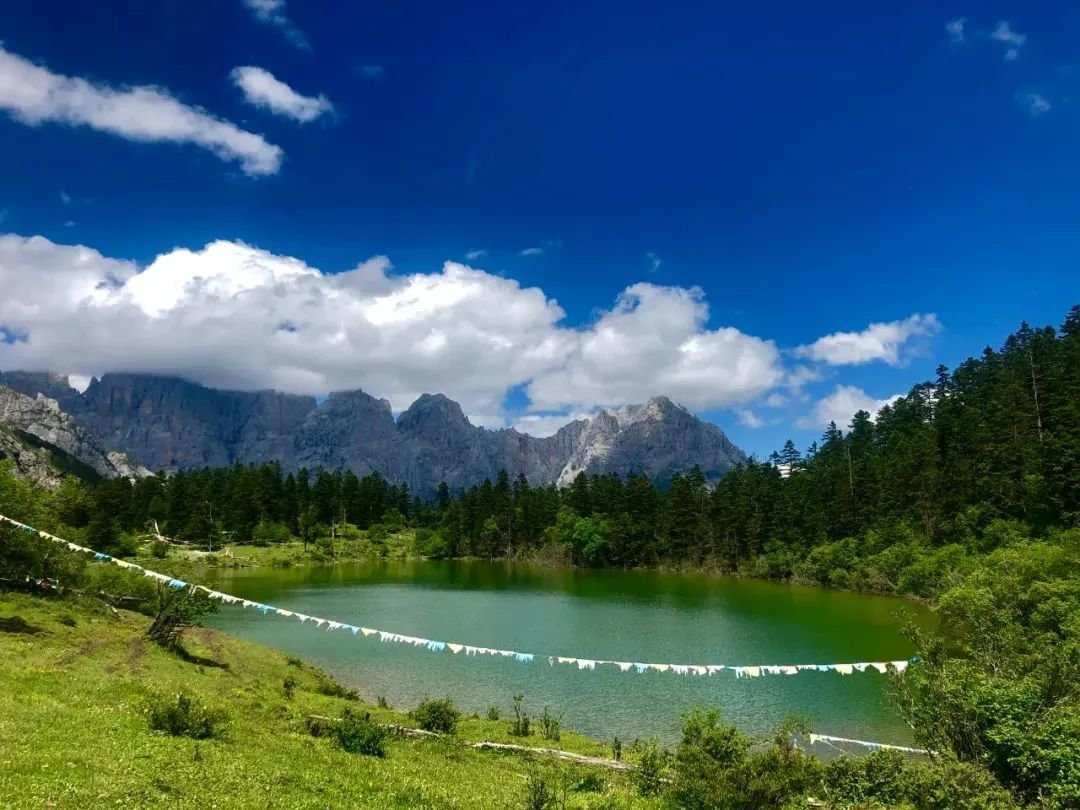 骨麻湖又名“玉湖”,海拔3820米,位于迭部县桑坝乡黑拉村西北半山腰处,四周青松翠柏、郁郁葱葱,万物倒映在湖中,令人赞叹。