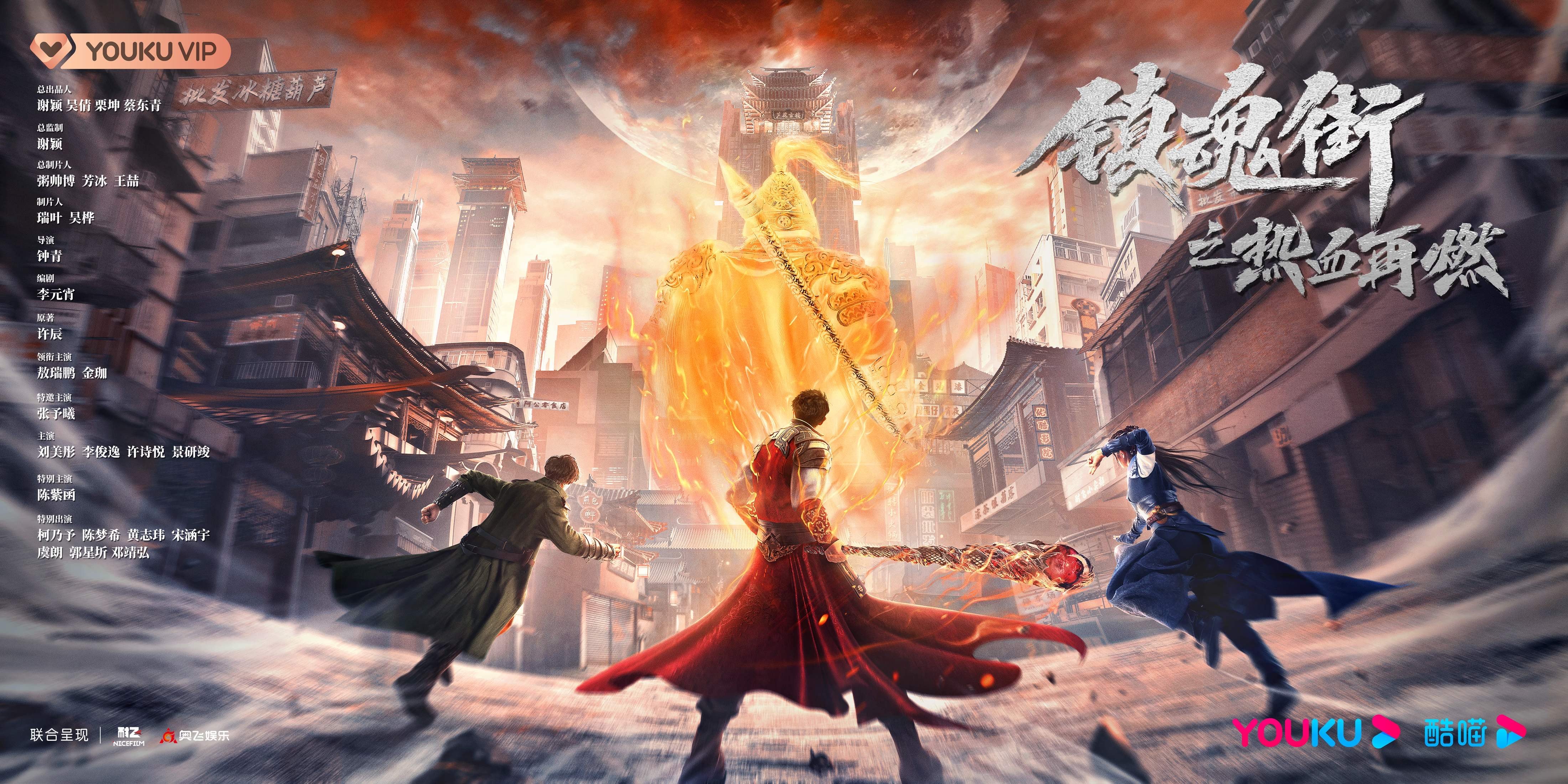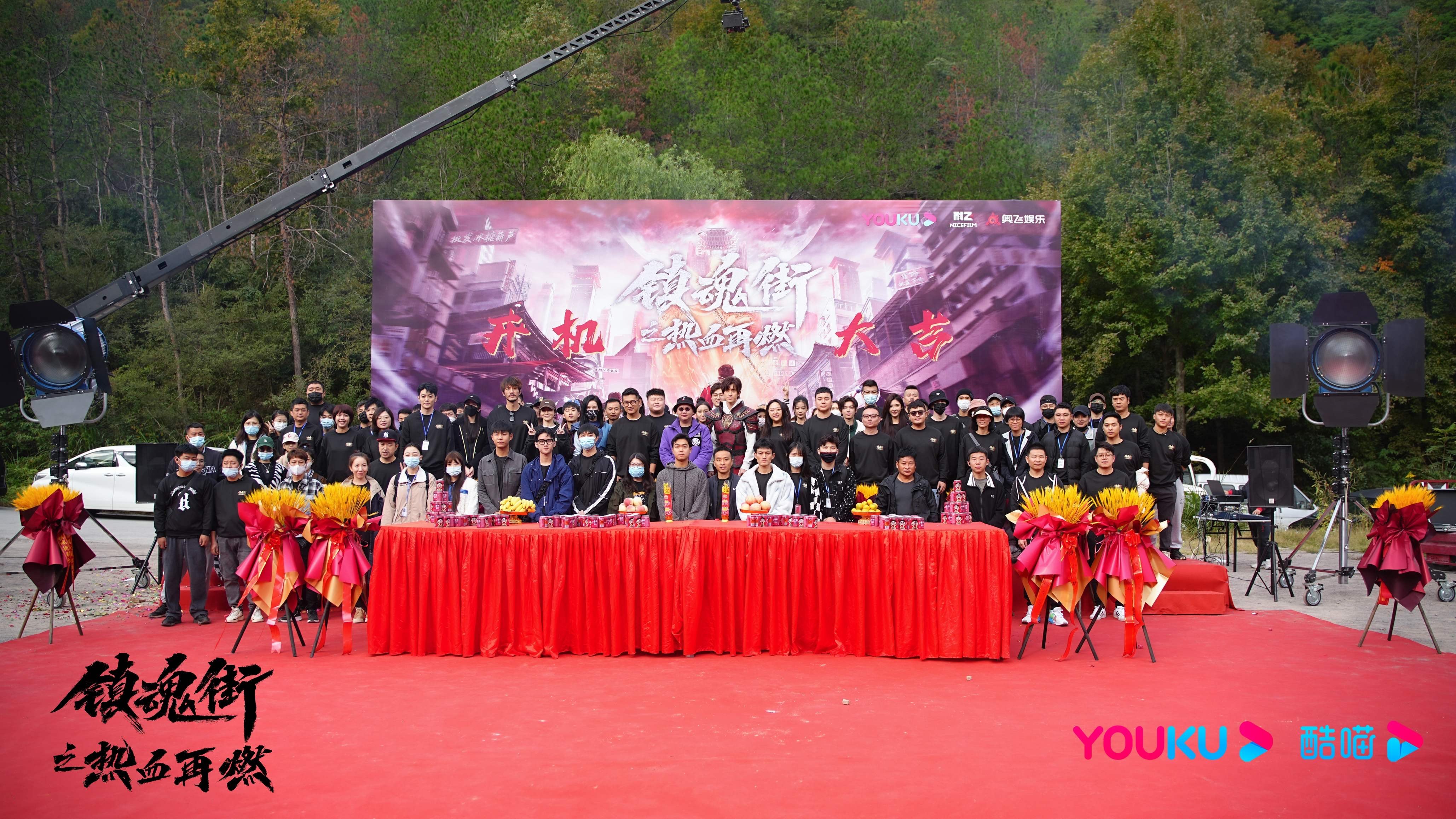 10月20日,由优酷、耐飞、奥飞娱乐出品的漫画IP改编网剧《镇魂街之热血再燃》在横店正式开机,一众主创集体亮相现场。该剧由谢颖、吴倩、栗坤、蔡东青任总出品人,谢颖任总监制,粥帅博、芳冰、王喆为总制片人,瑞叶、昊桦为制片人,张森雨、唐晶亮为执行制片人,钟青执导,敖瑞鹏、金珈领衔主演,张予曦特邀主演,刘美彤、李俊逸、许诗悦、景研竣主演,陈紫函特别主演,柯乃予、陈梦希、黄志玮、宋涵宇、虞朗、郭星圻、邓靖弘特别出演。《镇魂街之热血再燃》改编自原创漫画家许辰创作的国漫IP《镇魂街》,原作于十年连载过程中积攒了超高人气,阅读量近53亿次,自网剧改编的消息一经释出便吸引外界诸多关注,引发多方期待。