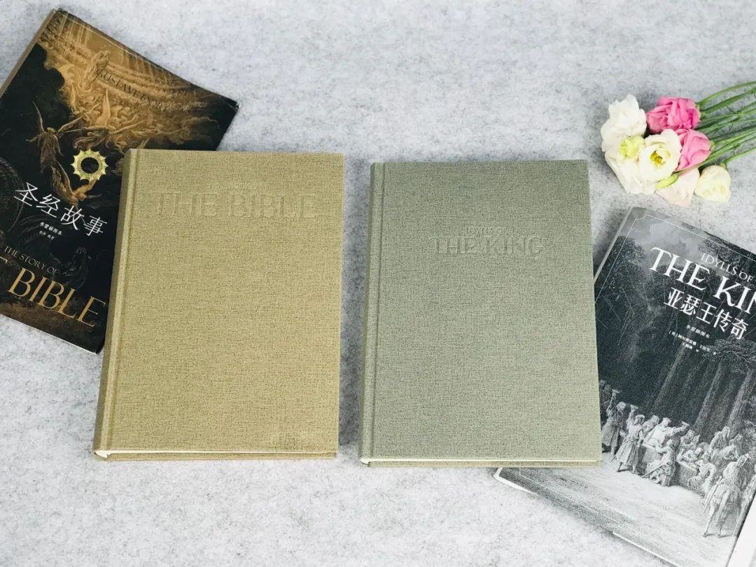 看一本书是不是好书,一定要把封皮取下来,看一下里面的书壳用的是什么材质。这一套多雷插图系列,是一个硬壳包裹压画布纹的纸的装帧,简约又讲究。