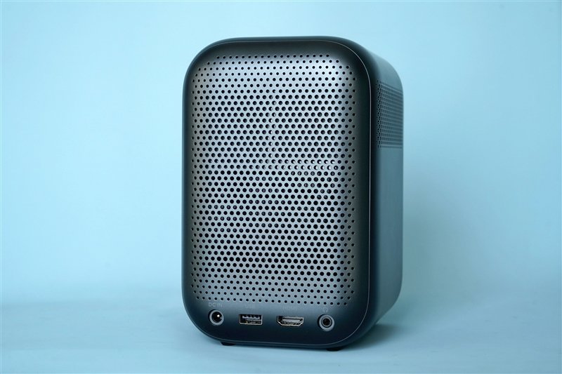 背面采用了整体网格开孔的造型,底部则是4个接口:DC电源、USB、HDMI、3.5mm耳机插孔。