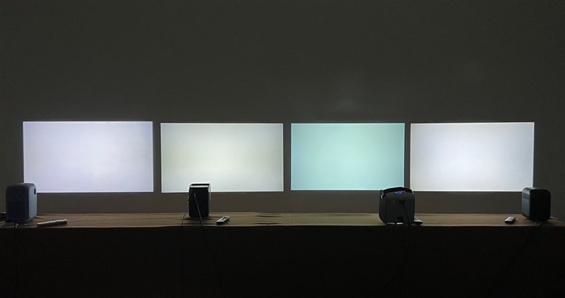 在纯白画面下,Redmi投影仪投射出的画面,比其它在色温上较为准确,没有出现其它竞品颜色偏冷、偏黄或者偏绿的问题。