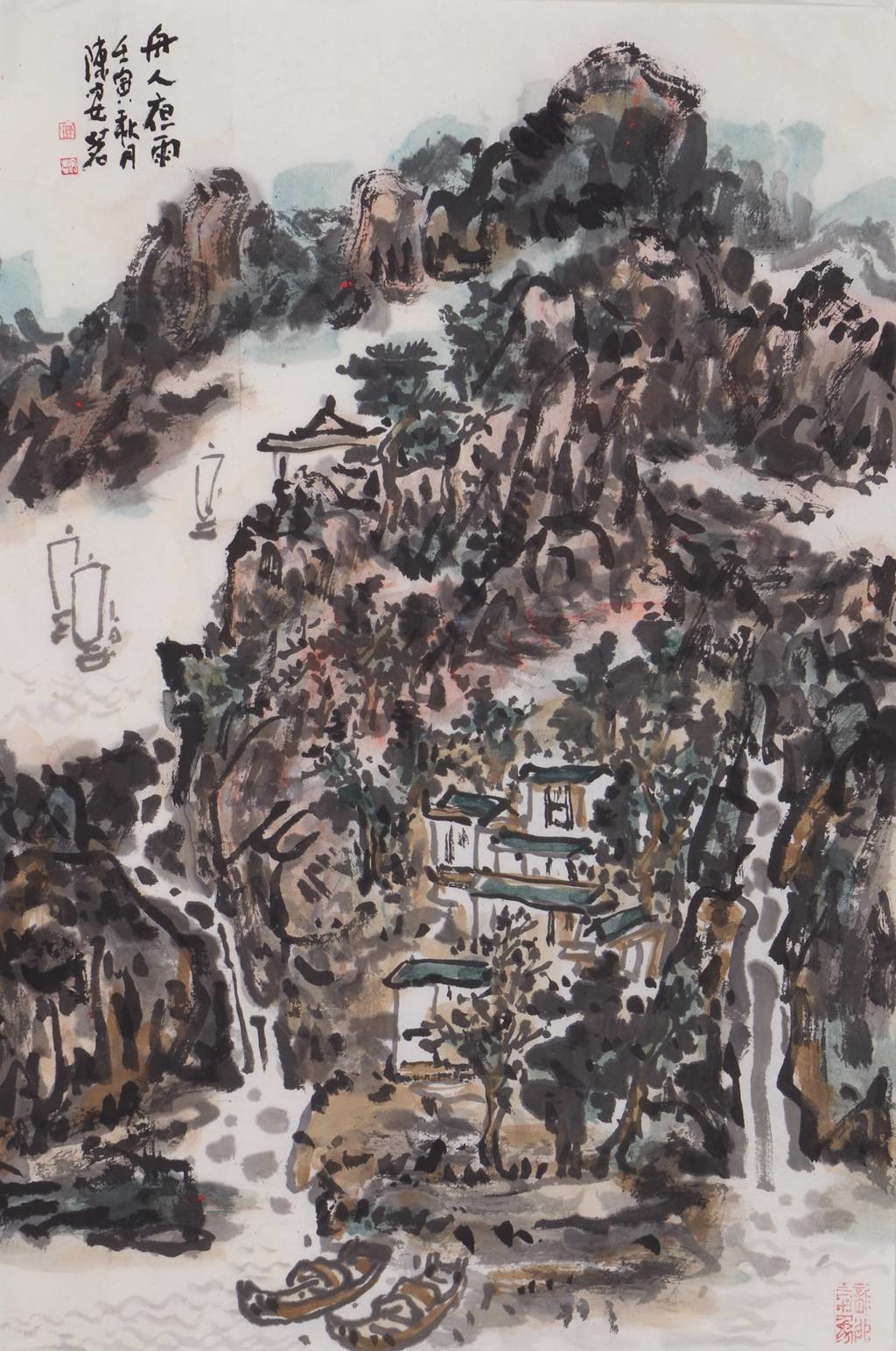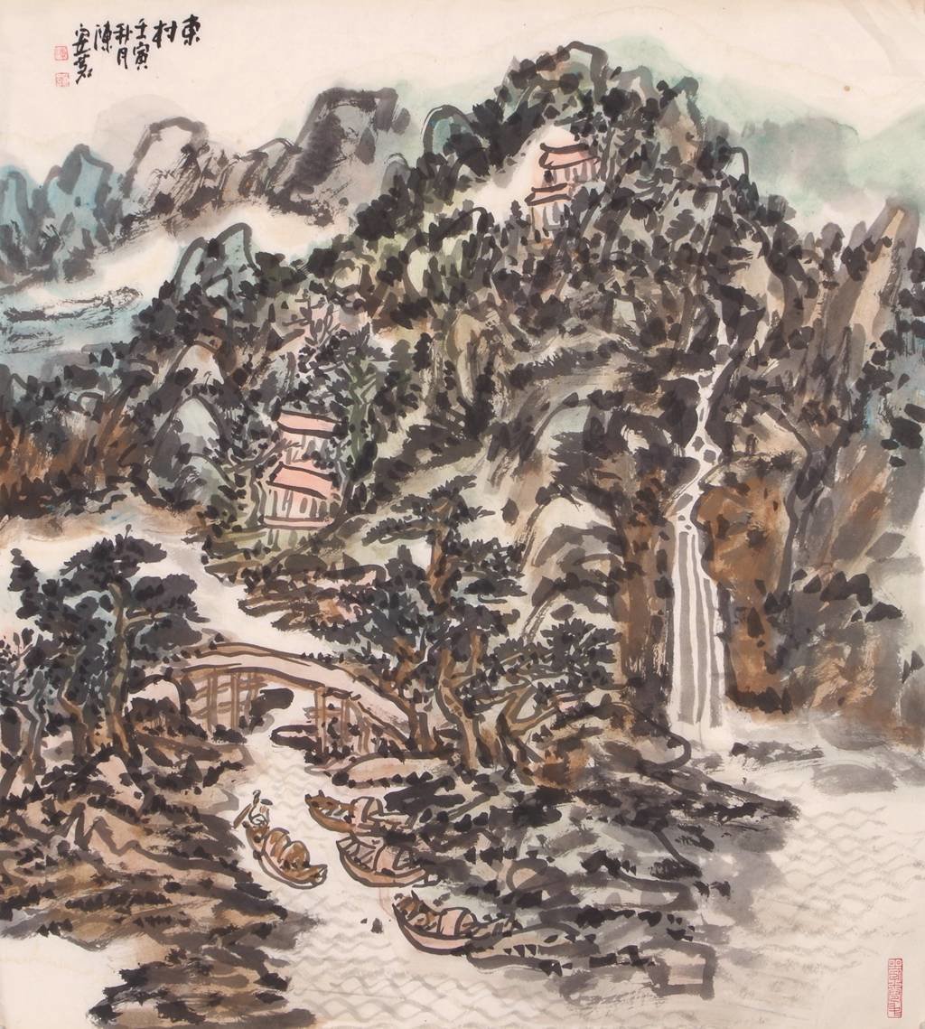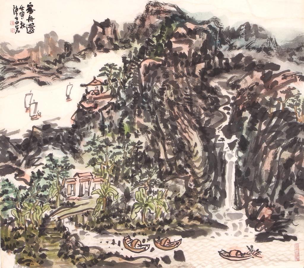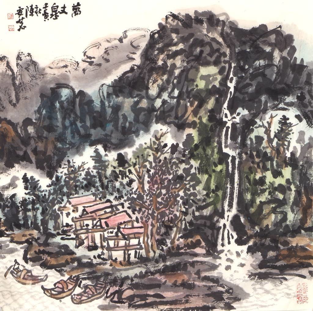 山水画不能一遍即了,必须一遍二遍地加,才能厚,才能使人有完工的感觉。何处应加,何处不应加,心中要有个数。大致实处重处要加,甚至有的地方加得结实,一遍二遍地加,不让它透一点风。有些地方少加,或者干脆不加,即所谓“放得下”。